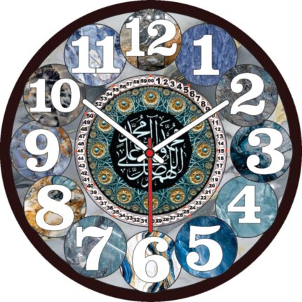 Islamic Wall Clock with Arabic Calligraphy, Round Shape, Modern Style, Large 25.5cm, Black Frame, Clear Arabic Numerals