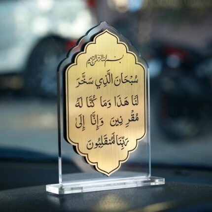 MWL® Islamic Car Dashboard Decoration | Safar Dua Travel Prayer Acrylic Stand | Gold & Silver Finish | Spiritual Protection Ornament for Car Interior |Ramadan Eid Muslim Gift (9X6 CMS) (Golden)
