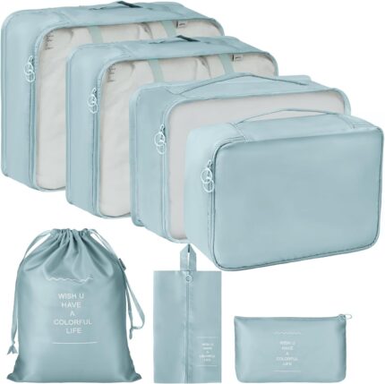 Packing Cubes 7 Set Travel Organizer Cubes for Suitcases Lightweight Luggage Packing Orginzers for Travel Acessories (Blue)