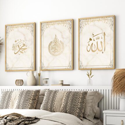 ARTELLY Islamic Wall Decoration Frames, Office Home Decor Wooden Framed Posters Set of 3 (Art 4, 10×13 inch)