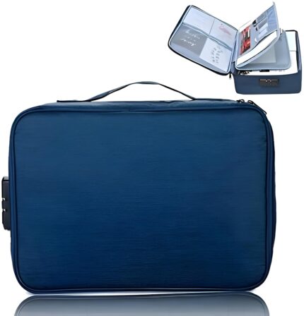 Price: (as of – Details) Waterproof 3-Layer Document Storage Bag with Password Lock,A4 Letter Size Portable Organizer for Passport, Legal