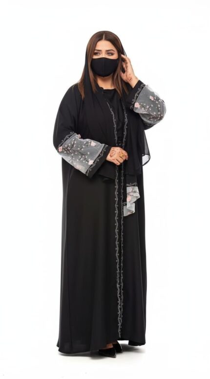 Hijabz by maaz – Premium Gulf Made Black Abaya for Women | Soft Flowing Luxury Fabric with Floral Embroidered Sleeves & Border | Elegant Modest Islamic Wear