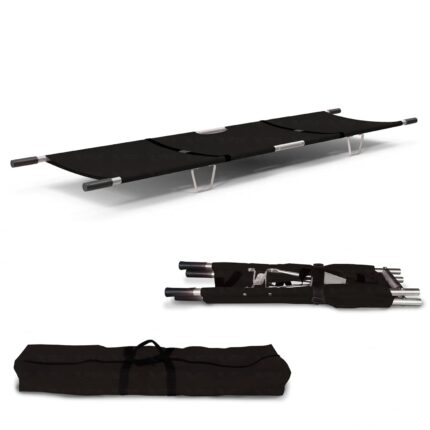 OTICA Foldable Stretcher for Patient Shifting – Portable for Emergency Hospital and Ambulance Use With Safety Belt (Aluminium, Black, Two Fold)