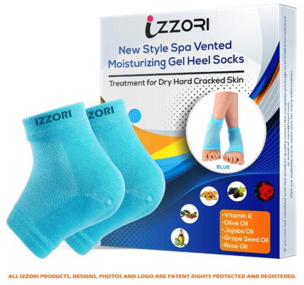 IZZORI Silicone Gel Heel Socks for Dry Hard Cracked Heel Repair Pad, Swelling & Pain Relief, Cushion Support, Foot Care, Ankle Protection, Plantar Fasciitis for Men and Women (Free Size, Blue, 1 Pair)