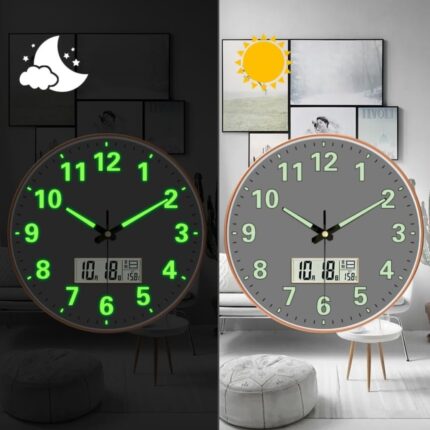 STAR WORK Non Ticking Silent Quartz Radium Glow Wall Clock for Living Room Bedroom Office | Mute and Quiet Clocks| Home Decorative Art Collection (Grey Analog | Round) Glass, Plastic , 12 Centimeters