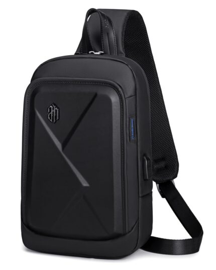 Arctic Hunter Sling Bag for Men 6L Semi-hard Chest Bag for 9.7″ iPad Pocket Smart Crossbody Bag with USB Ports Water-resistant Stylish Padded Shoulder Side Bag for Biking Travel Office College, Black