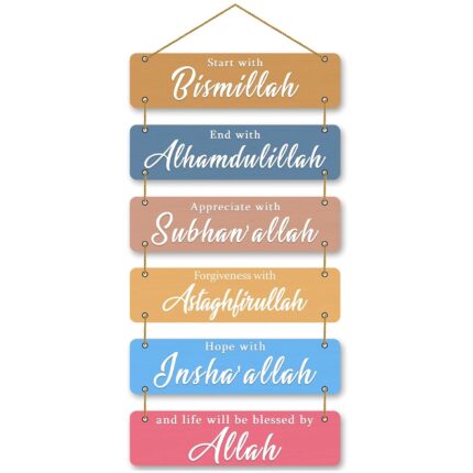 PARKOTA HOUSE Inspirational Islamic Wall Art | Wooden Hanging with Bismillah Alhamdulillah Subhanallah InshaAllah Astaghfirullah Design | Muslim Home Decor | Ramadan & Housewarming Gift