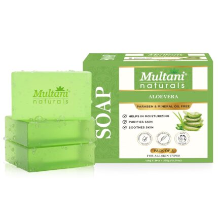 Multani Natural Aloe Vera Soap For Bath (125 Gm – Pack Of 3) | Helps In Reducing Acne | For Deep Hydration & Glow | For Pigmentatio & Sun Damage | Helps Rejuvenate Dull & Tired Skin | Paraben Free | Clinically Tested | For All Skin Types | Soap Bar For Men & Women