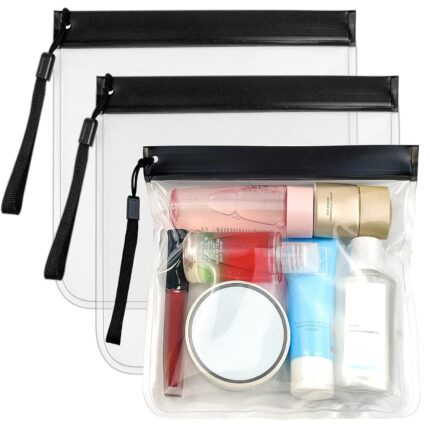 SYOSI 3Pcs Clear Travel Toiletry Bags, Waterproof Leakproof Travel Makeup Bag Sealable Wash Bags Airport Security Liquids Bags for Women Men (Black)