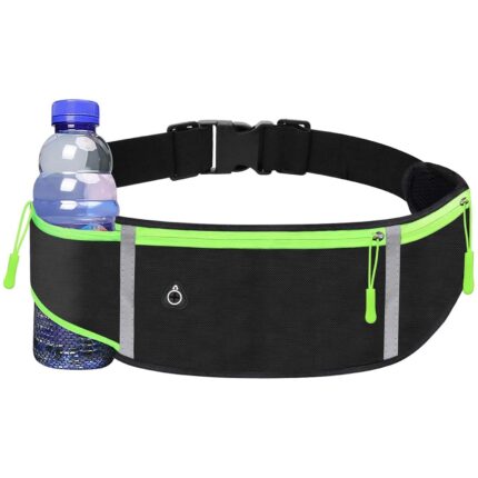 Starven Running Waist Bag with Water Bottle Holder | 3 Pocket Adjustable Running Belt for Men | Running Pouch Phone Holder for Runners | Waterproof Running Belt for Walking Cycling Hiking (Black)