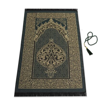 Muslim Prayer Rug – Prayer Mats Muslim, Traditional Style,Thick and Padded Muslim Prayer Mat, 99 Prayer Beads and a Prayer Cap Included, For Men-Women and Kids, Travel Bag and Prayer Bead (Green)