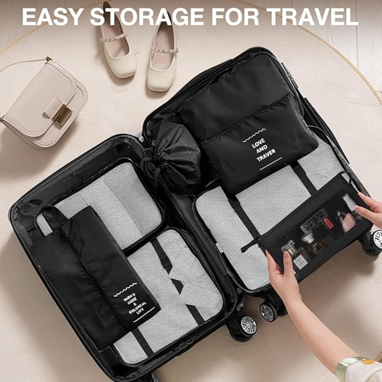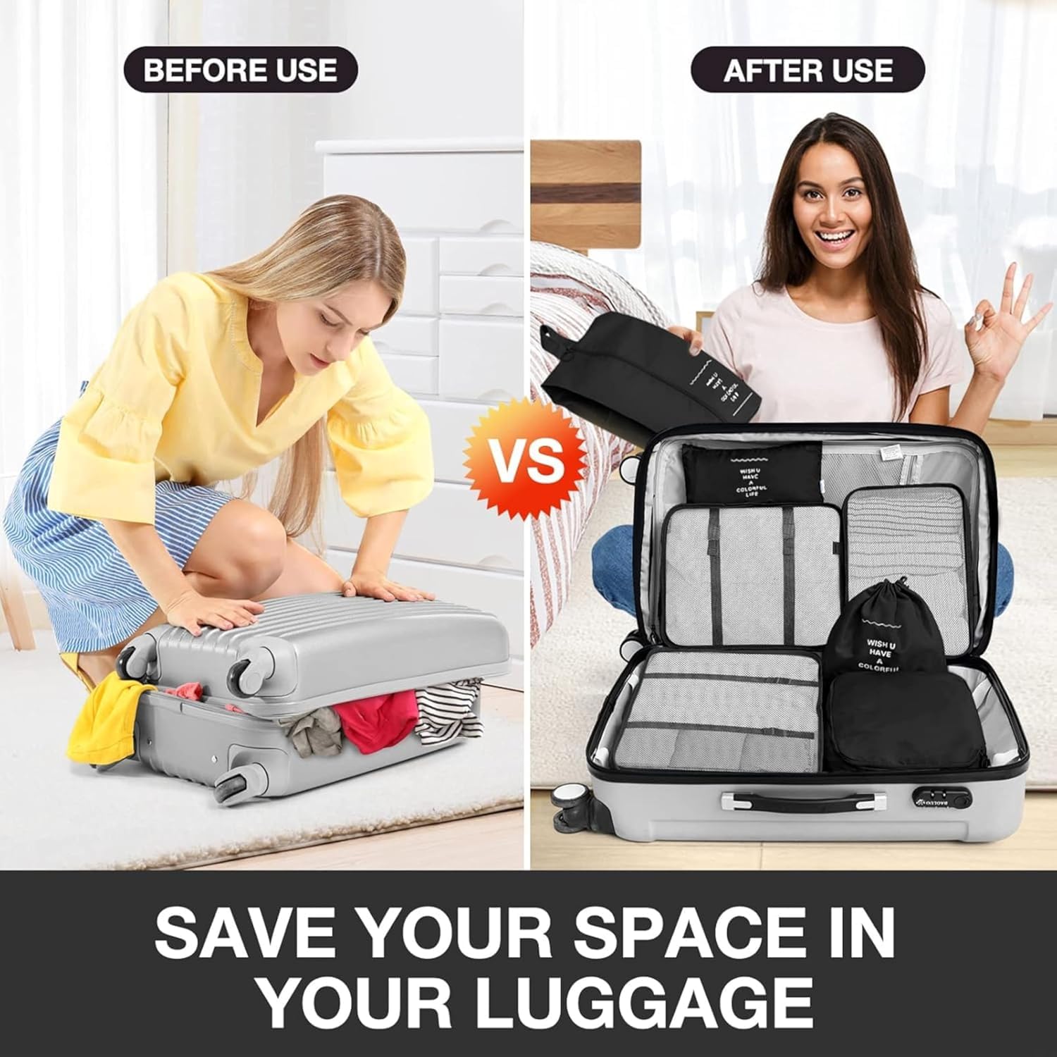✅ Complete 10-in-1 Set – Includes packing cubes, laundry pouch, shoe bag, cosmetic bag & more