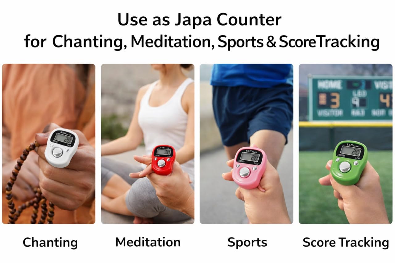 4 pc – Digital Tasbeeh Hand Tally Counter Finger Ring Digital Counting Machine Counter Tasbeeh & Jaap mala for Counting Purpose with LED (Color Will be Sent as per Availability) (Pack 4)