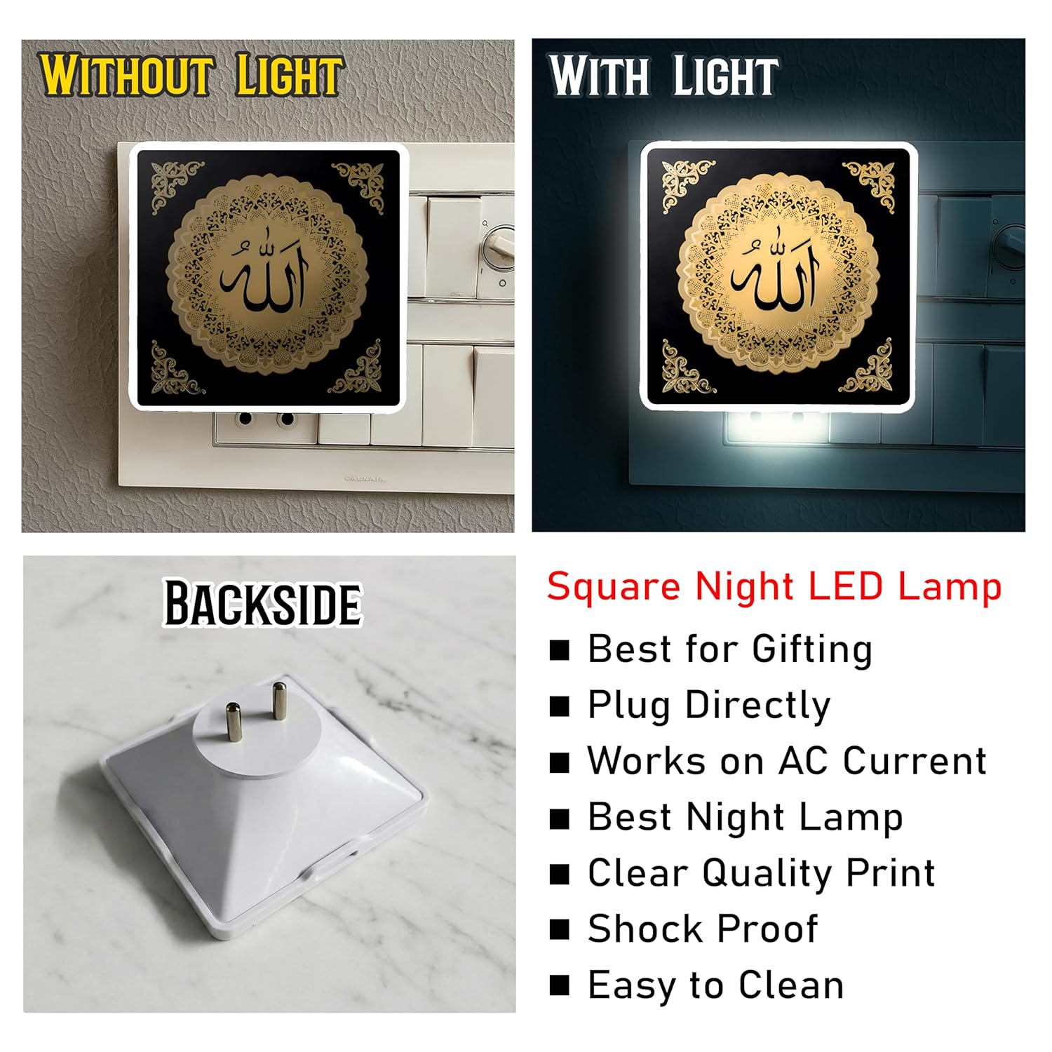 4×4 Islamic Night Lamp with Allah | White LED Light for Bedroom, Kids Room & Prayer Room | Muslim Home Décor | Festival & Corporate Gift (White04)