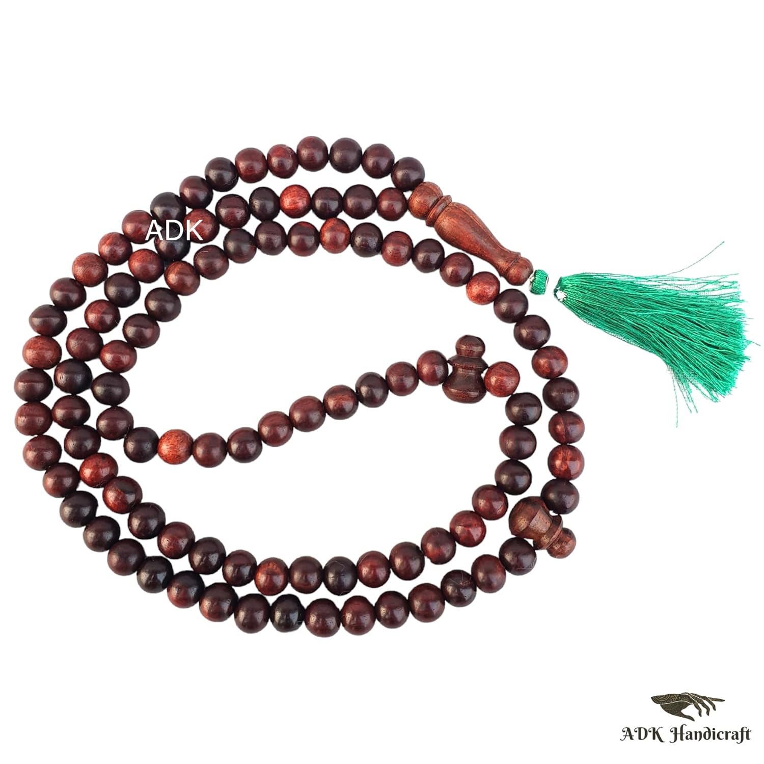 ADK Handicrafts 8MM Red Sandalwood Prayer Beads Islam-Masbaha Rosary Chandan Tasbih Mala 100 Beads (99+1), Natural lal chandan Beads-Tasbeeh Counter-Zikr Beads-Dhikr Muslim-Tasbih-Misbaha-Subha-Sibha