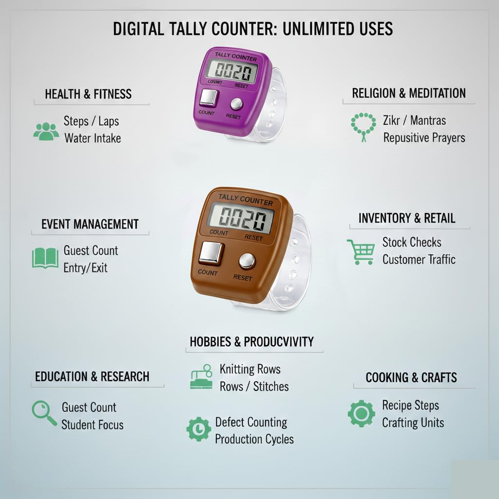 Multi-Purpose Use: Beyond religious practices, this digital tally counter can also be used for various counting tasks in daily life, such as tracking inventory, attendance, or any other numerical activities.