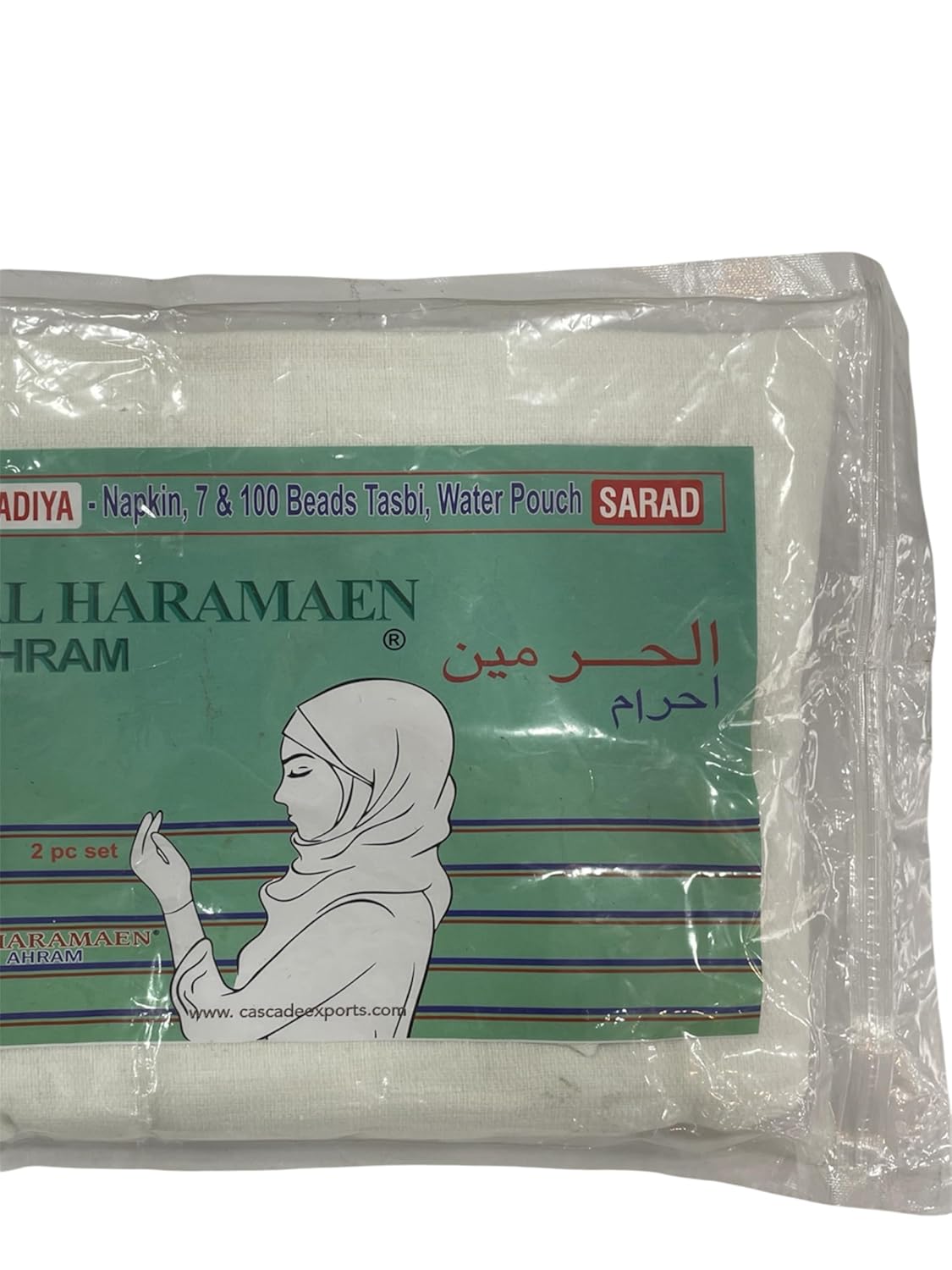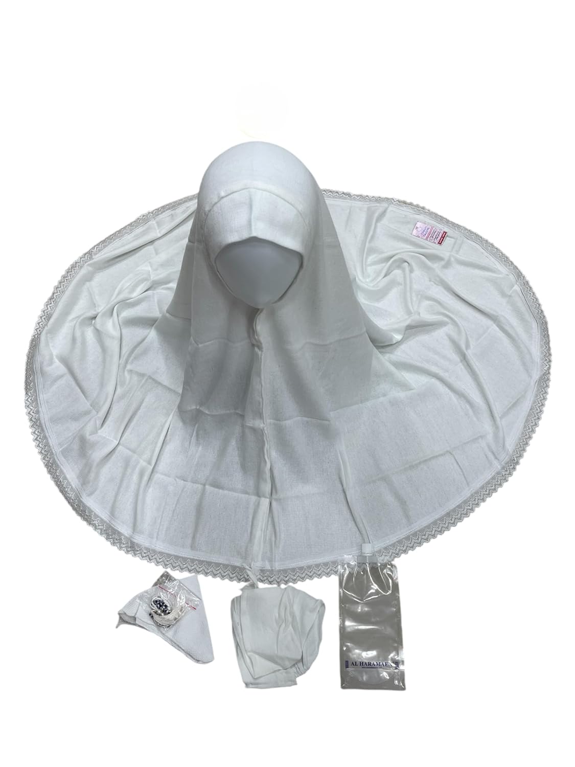 Al Haramaen Ladies Towel Ahram Ihram Set for Hajj and Umrah, Hijab and Cap Set with Napkin, Tasbih 7 &100 Beads, White