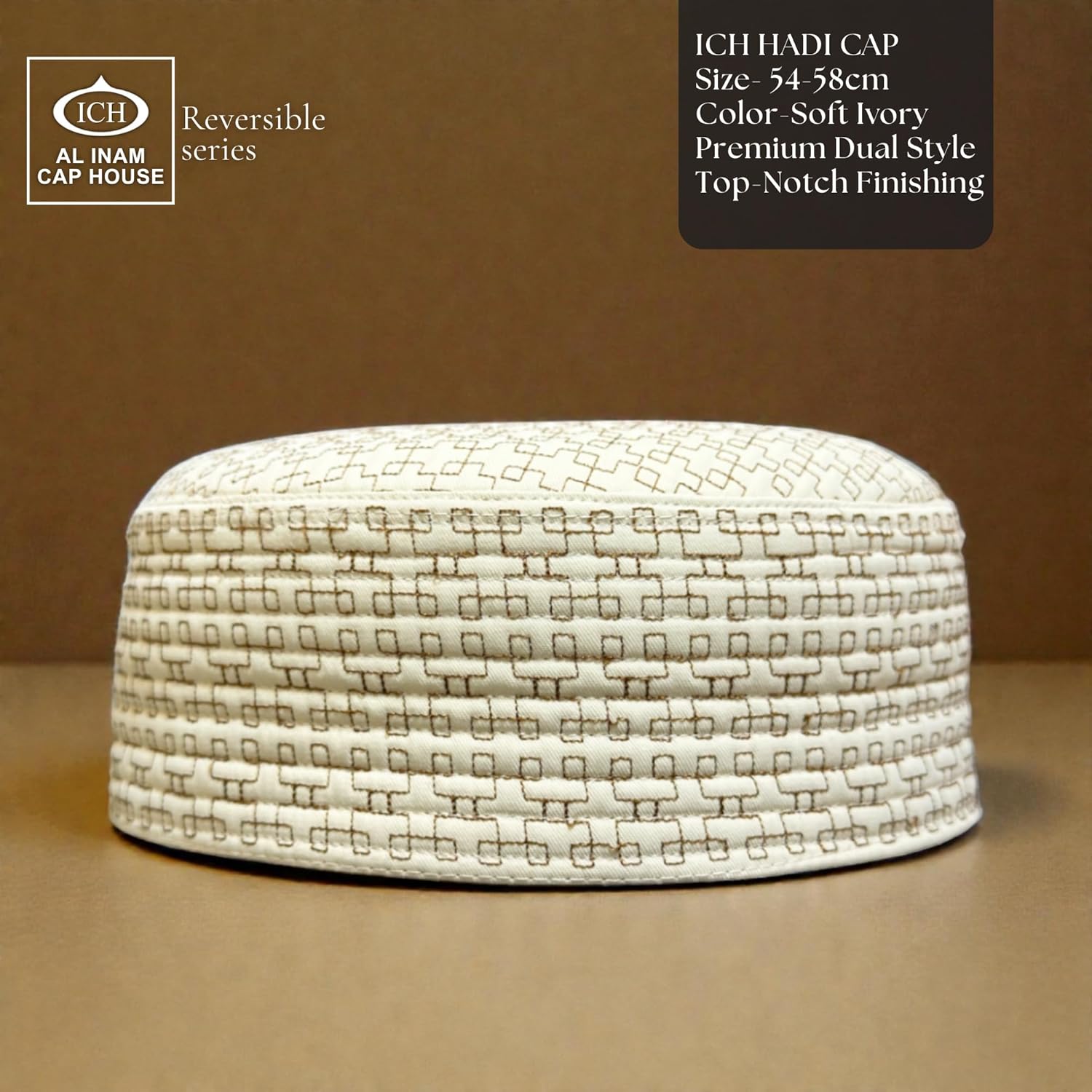 AL INAM ICH Style Reversible Islamic Prayer Cap Premium Embroidered Namazi Topi Muslim Cap (Model No: R-72) Fabric