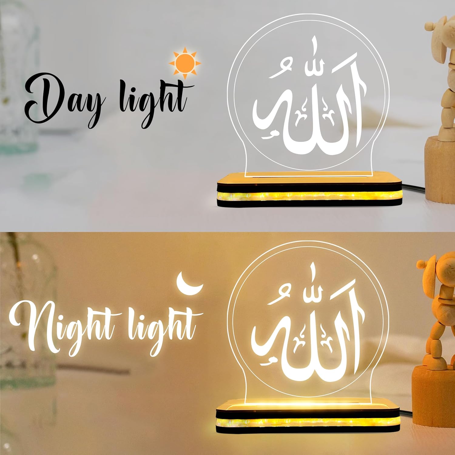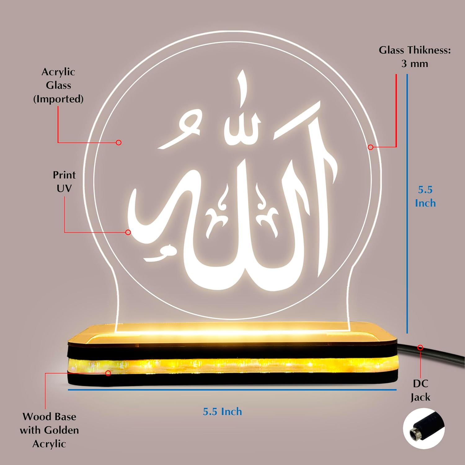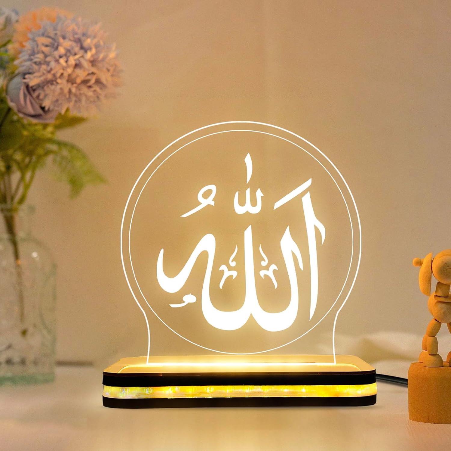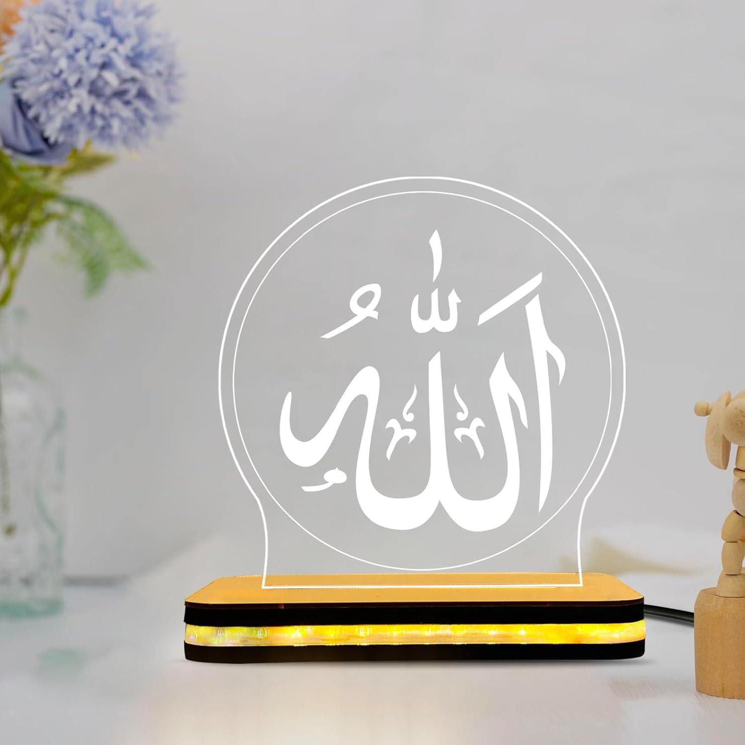 Allah Name LED Lamp | Islamic Acrylic Night Light Plaque | Muslim Home Decor Table Lamp | Nikah, Wedding, Engagement Gift for Muslim Couple | Decorative LED Light for Bedroom (5.5 x 5.5 Inch)