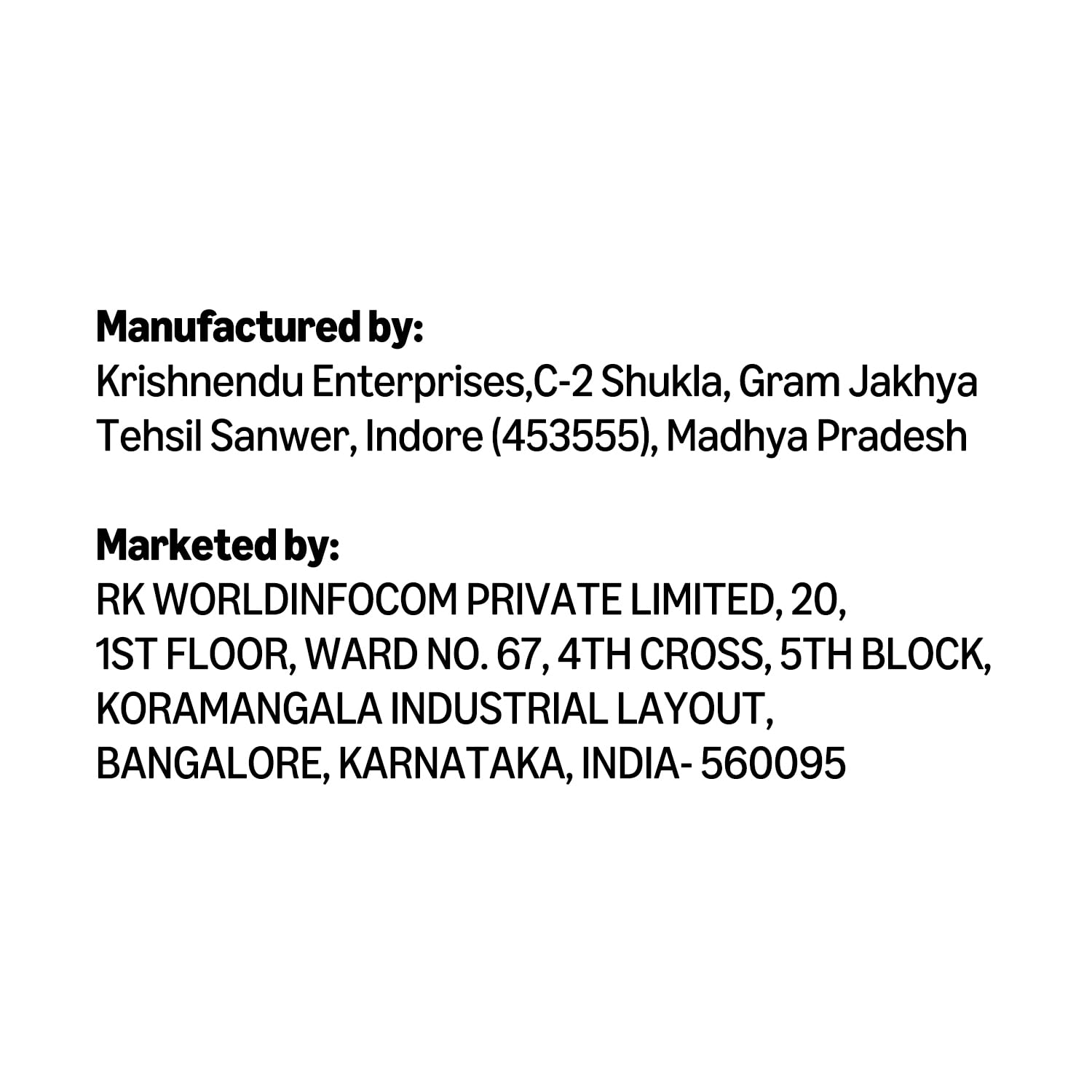 Packer : Krishnendu Enterprises, C-2 Shukla warehouse, Gram jakhiya, Sanwer Road, Indore – 453 555, M.P