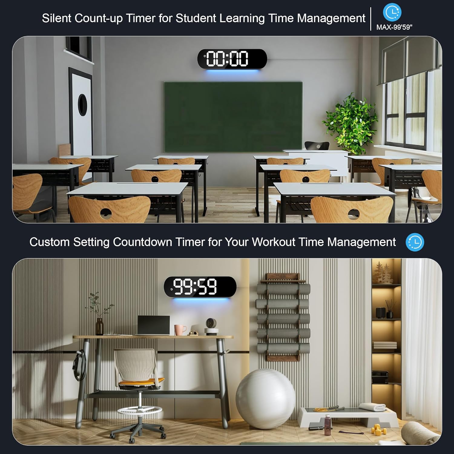 13.7 Inch Large Display Digital Clock: The Digital Wall Clock has a large screen that displays the time, date, week, daylight saving time, and temperature all at once. It offers a seamless and pleasant visual experience, allowing you to easily see important information at a glance. It is user-friendly with simple time and alarm clock settings. It is suitable for children, older adults, and people with visual impairments.