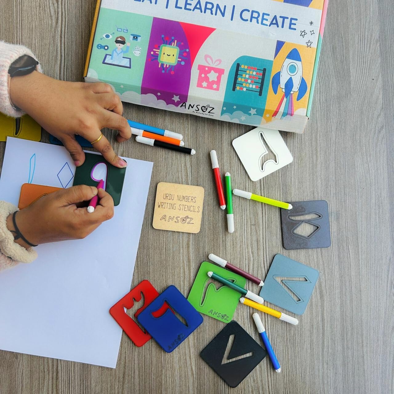 Ansoz Urdu Number Stencil Writing Kit for Kids | Educational Tracing Board Set