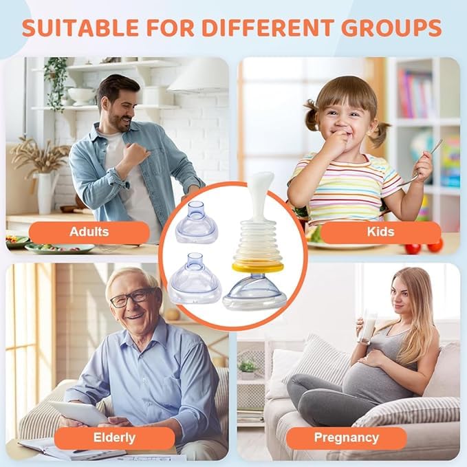 UNIVERSAL USABILITY FOR ALL AGES: This choking emergency device is thoughtfully designed to cater to both kids and adults, featuring two sizes of face masks. Its versatility ensures that families have a reliable tool for choking emergencies, tailored to various ages, making sure you’re prepared for unexpected situations and get immediate help