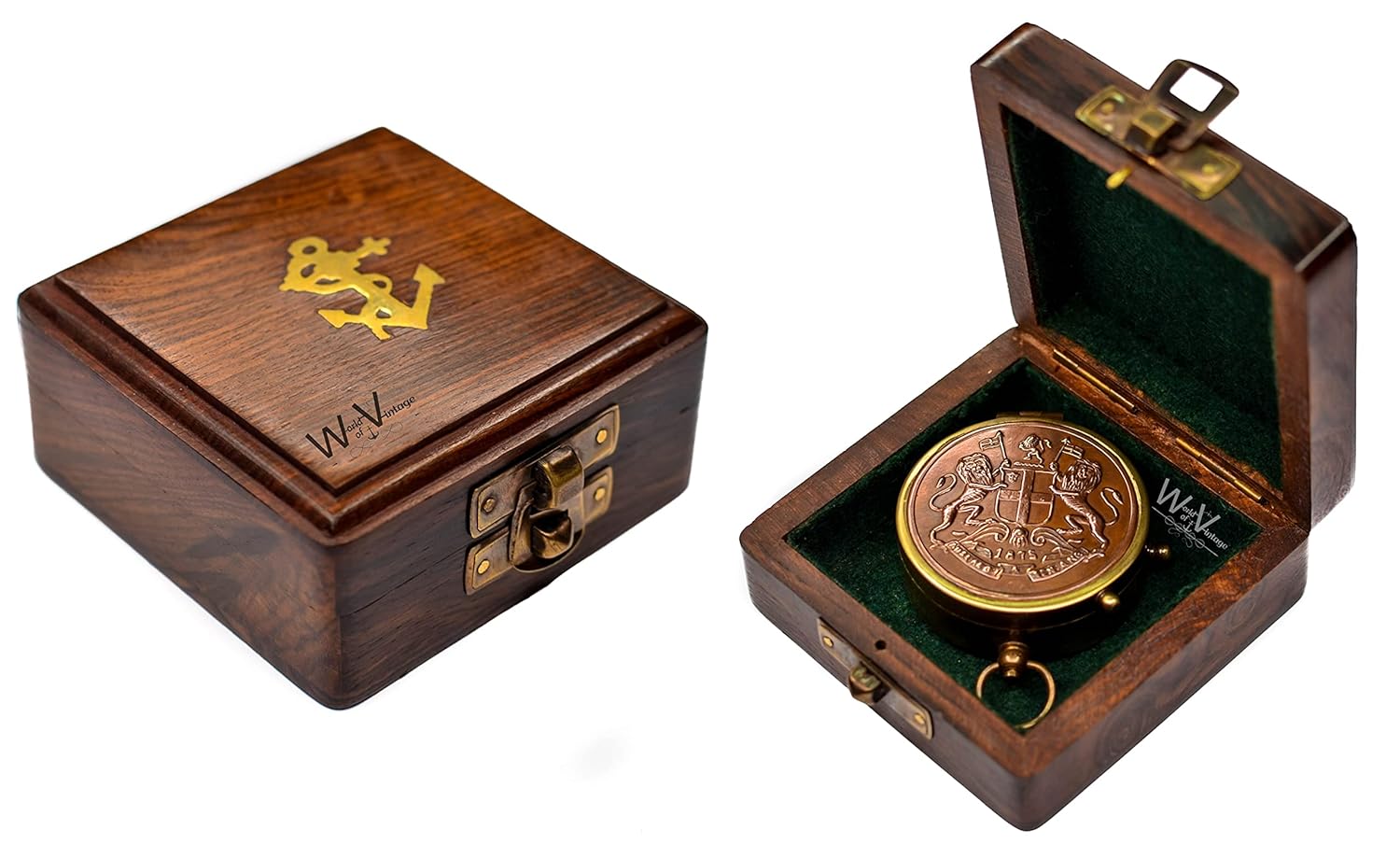 Elegant Wooden Box: The compass is housed in a beautifully crafted wooden box that adds a touch of elegance, with a brass anchor on top for an added nautical charm.
