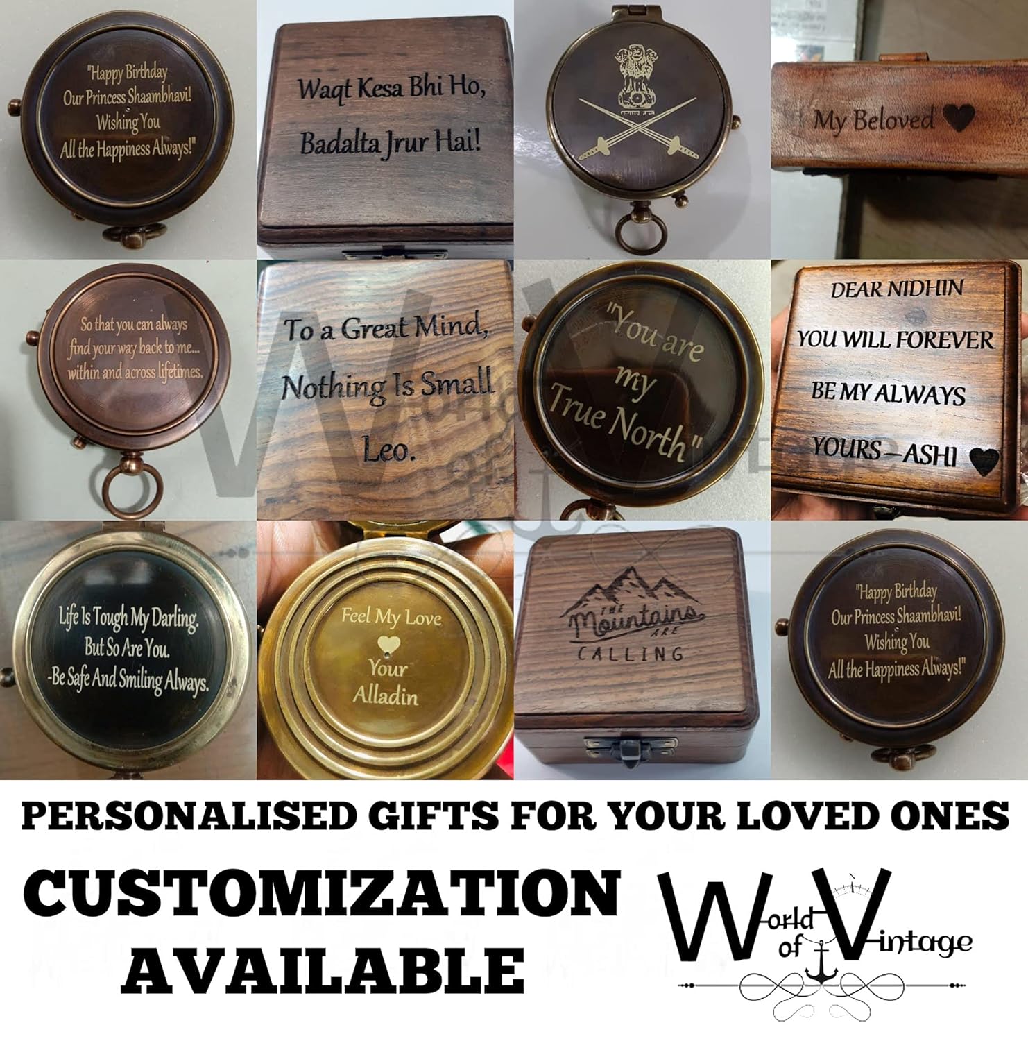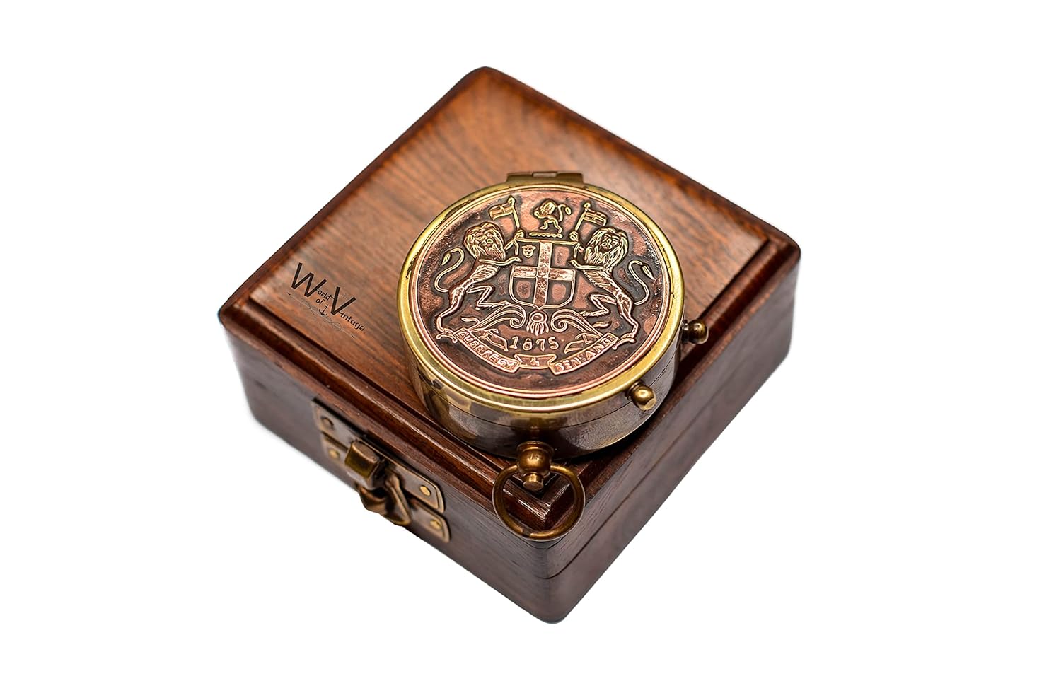 Perfect for Display: Whether on a shelf or desk, the brass compass and wooden box make for a stunning display piece with a historical aesthetic. also can be customized with your text or logo.