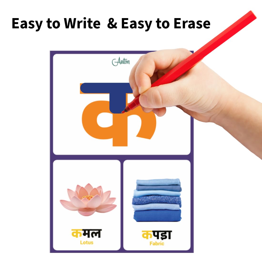 Anton| Kids Hindi Varnamala Flash Cards | Hindi Alphabets for Kids | Language Skills forPreschool/Play School/Homeschooling | Wipe and Clean Activity Cards