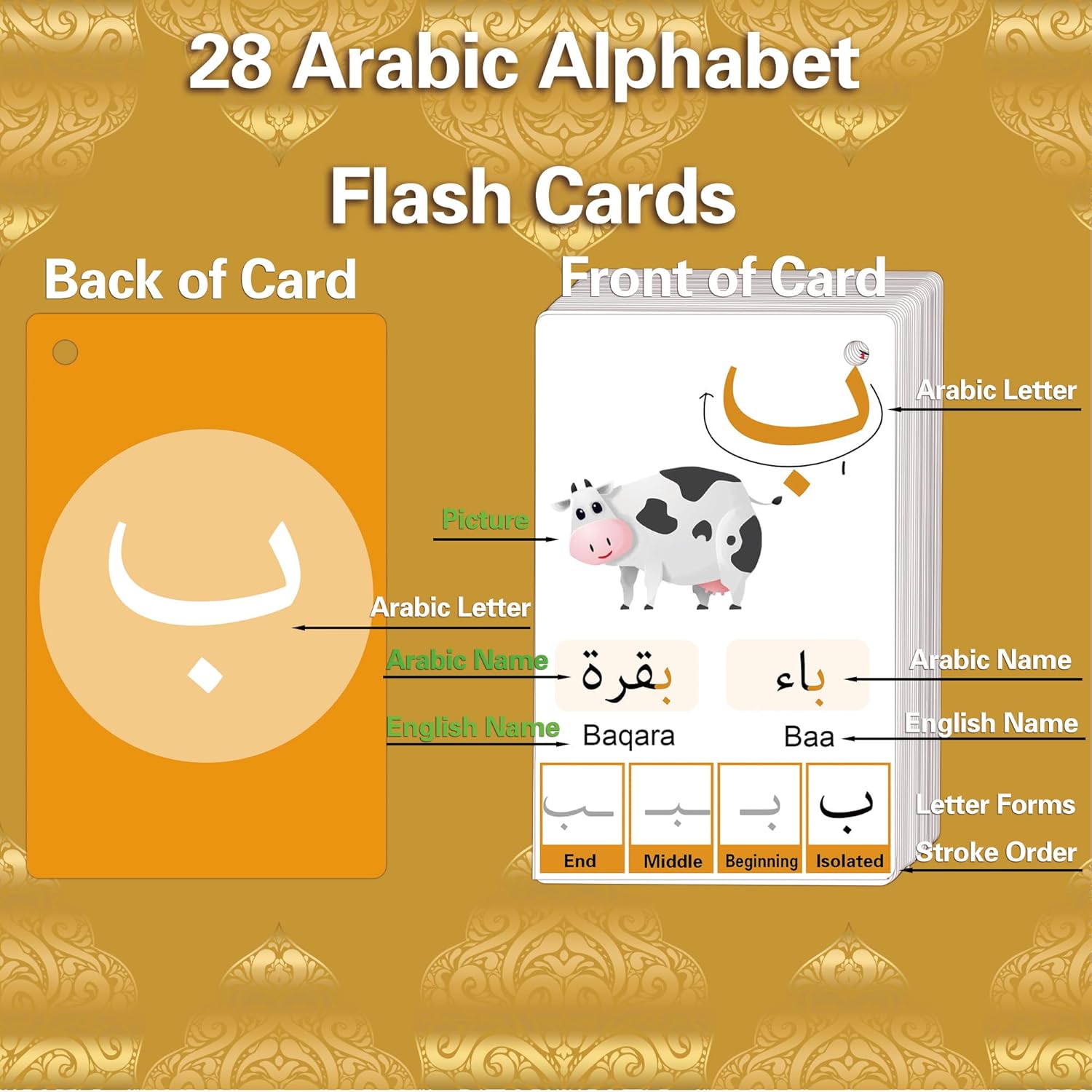 28 Arabic Flash Cards for Beginners,Learn Arabic Alphabet for Kids, Teens and Adults