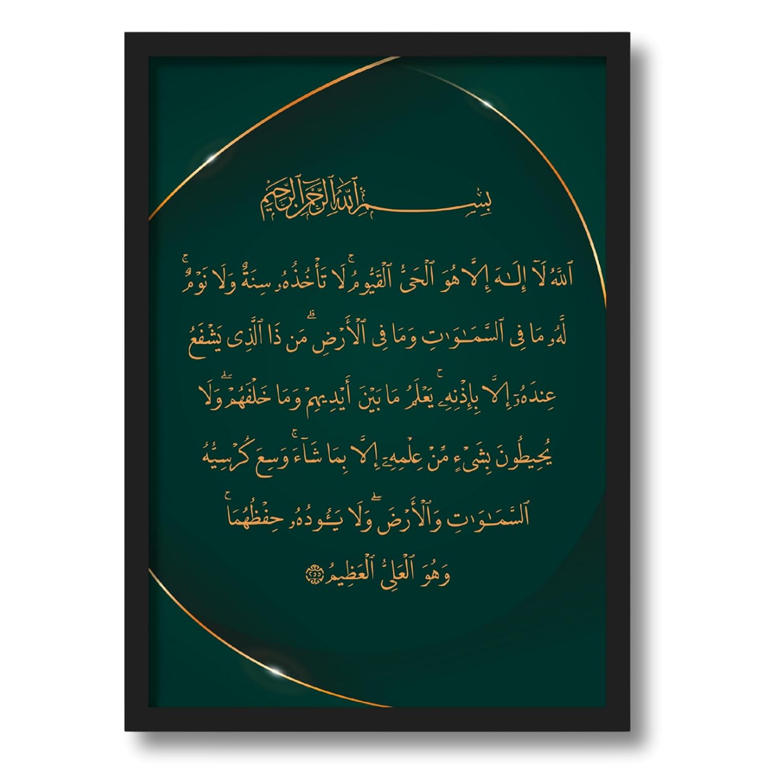 AYATUL KURSI WALL FRAME: ArtAction Ayatul Kursi Arabic Calligraphy Wall Frame Poster in A4 size (31×23 cm), featuring a beautiful rendering of the sacred verse in gold calligraphy