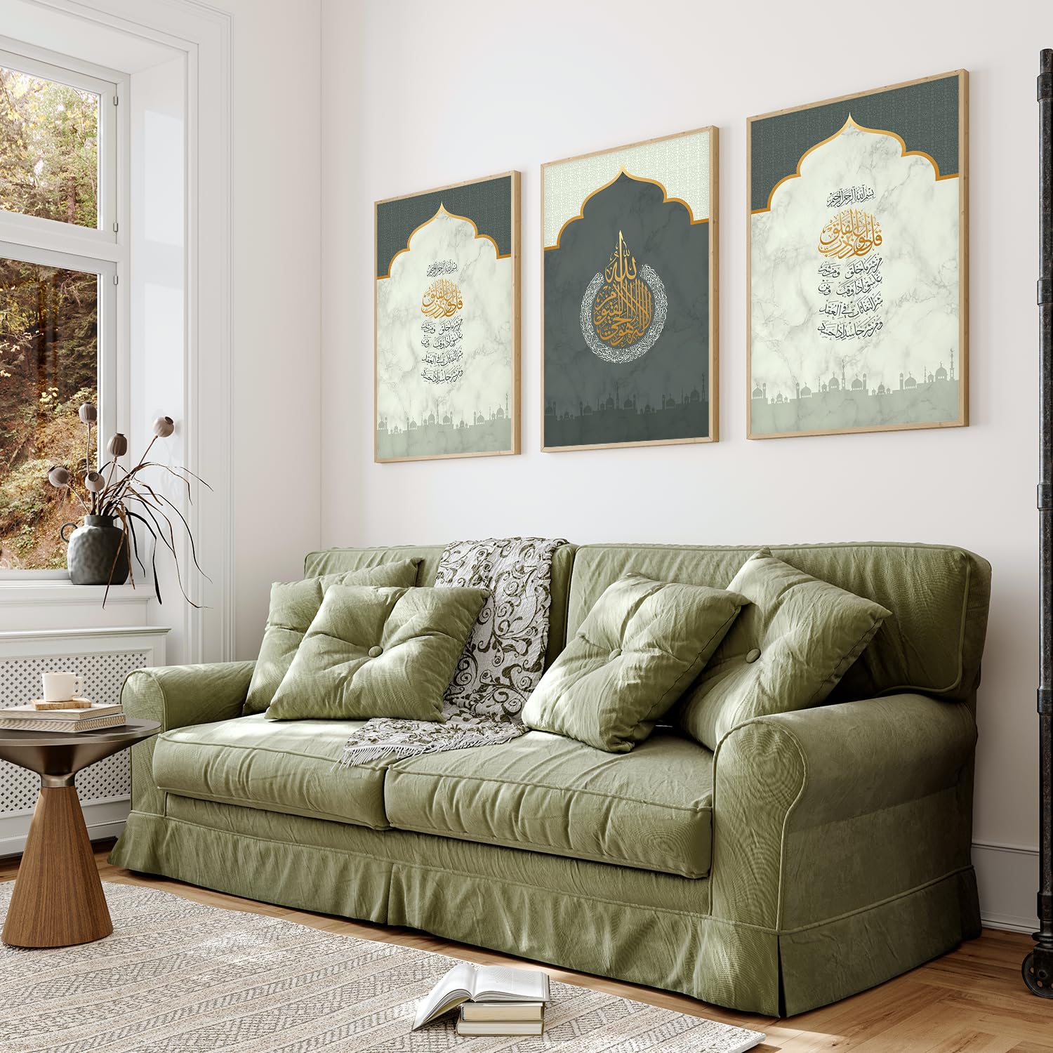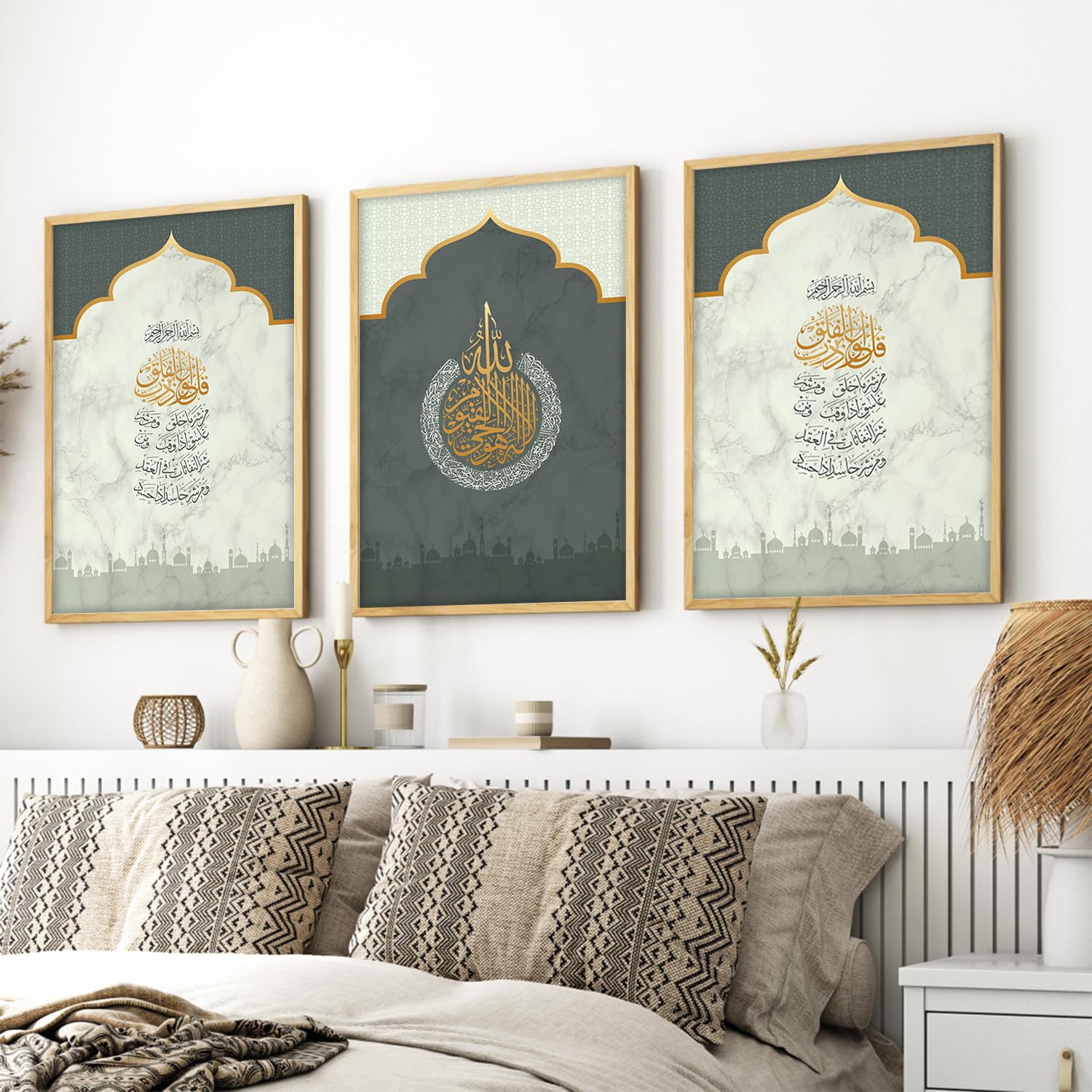 ELEGANT ISLAMIC ART: Set of 3 wall paintings featuring beautiful Arabic calligraphy of Ayatal Kursi, perfect for adding spiritual elegance to your home décor