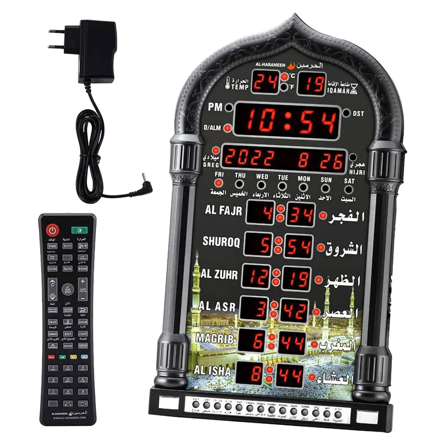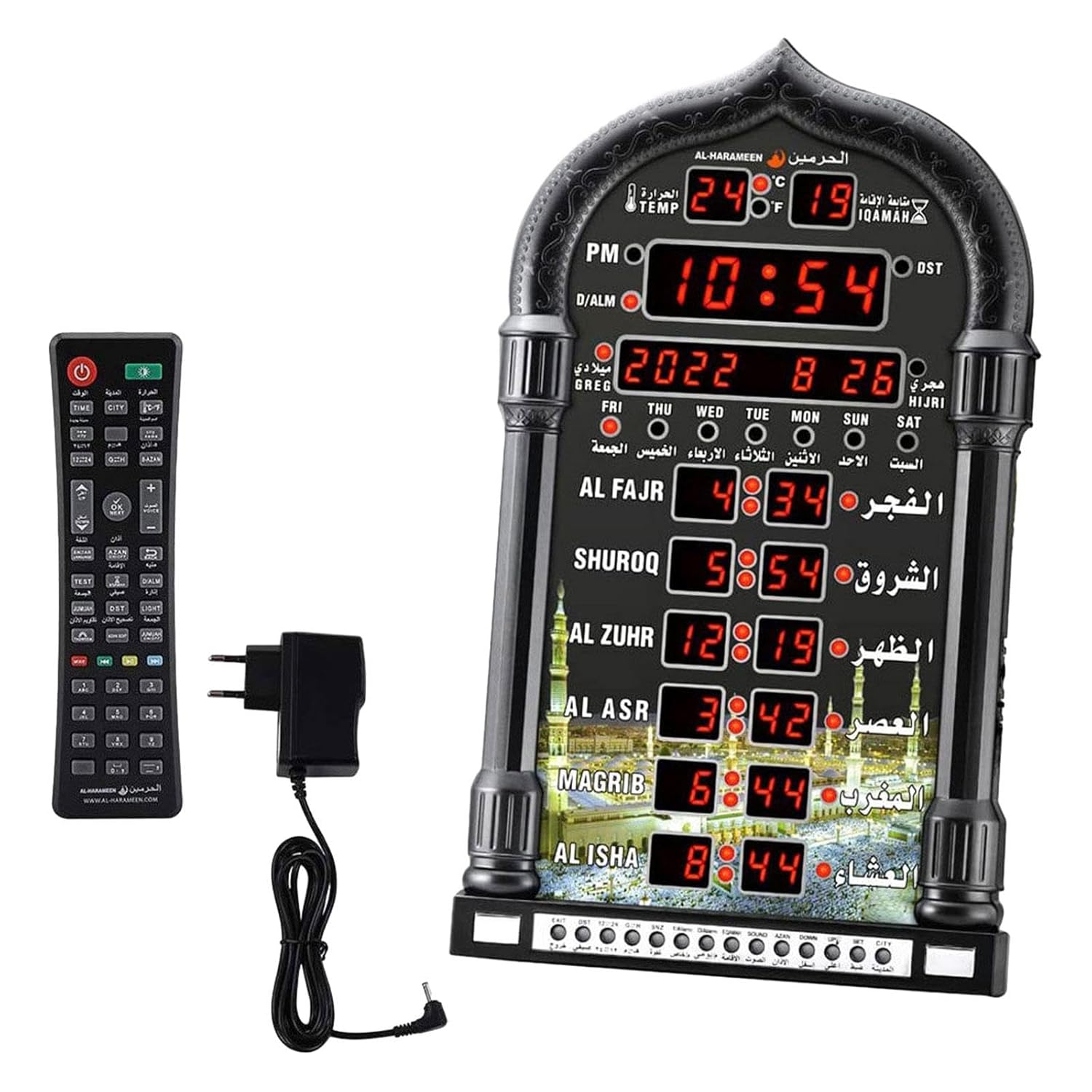 Led Prayer Clock Worlds Time Function, Prepare Azan Time For Major Cities Around The World, A Total Of 1,500 Cities To Choose From, 5 Prayer Hours Per Day.