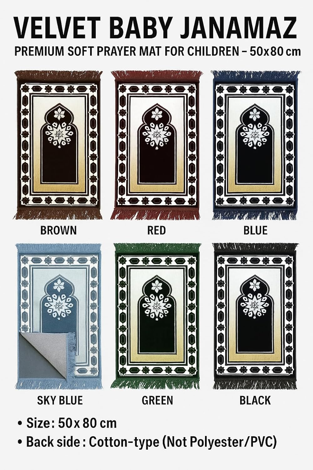 MATERIAL: Premium velvet fabric construction provides comfort and durability for daily prayer routines
