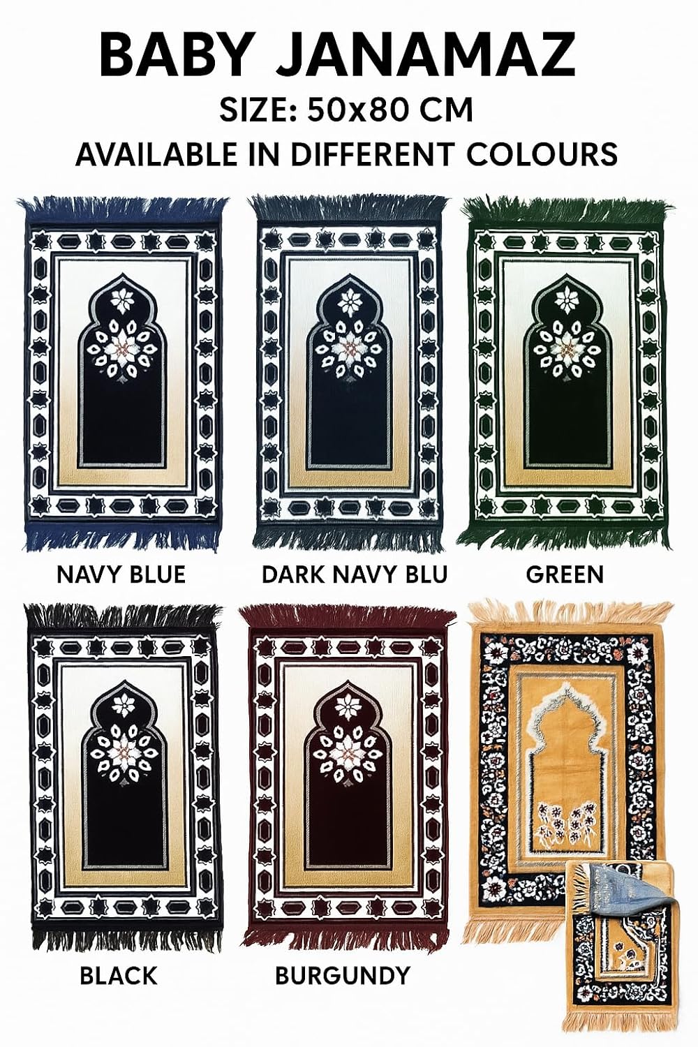 DIMENSIONS: Compact size prayer rug with fringed edges, perfect for individual worship and travel needs
