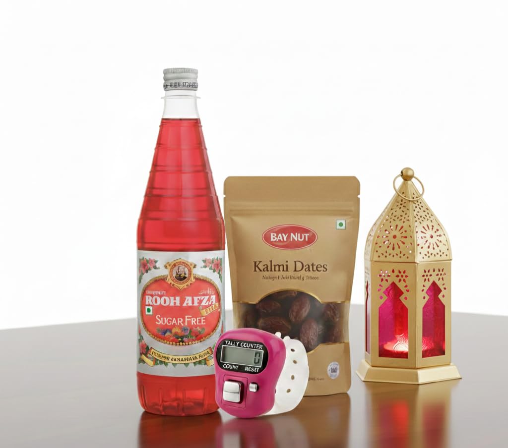 Bay Nut Ramadan Hamper with Rooh Afza, Kalmi Dates 450gm, Decorative Lantern, Tasbeeh Counter, Ramadan Gift Set