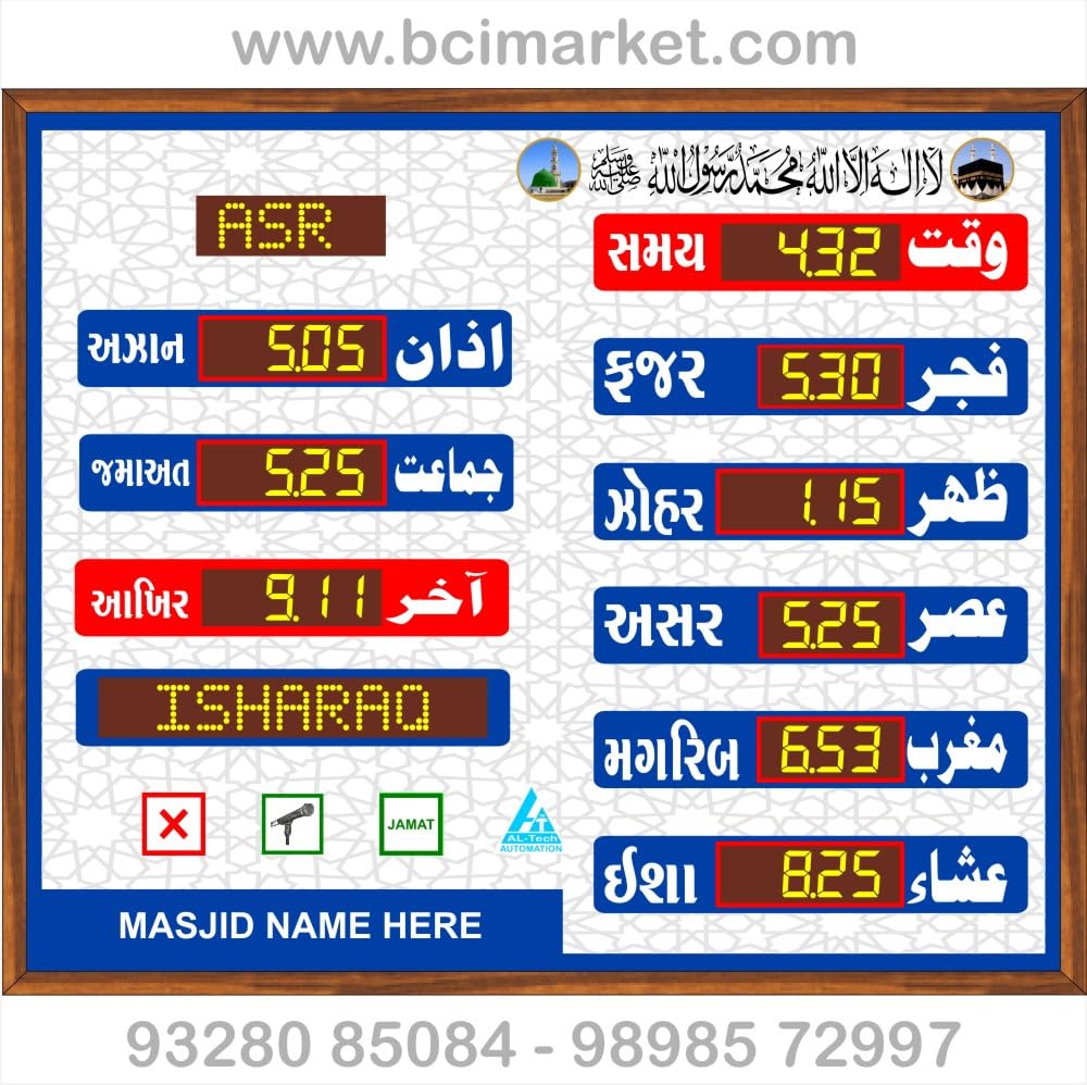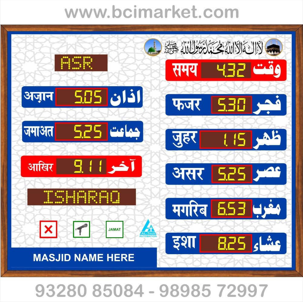 BCI Electronics | Masjid Clock | Namaz Time Table Digital Board | Salat Salah | Meeqat | Azan Clock | Muslim Prayer Times | Qibla & Namaz | Azan Adhan Timings