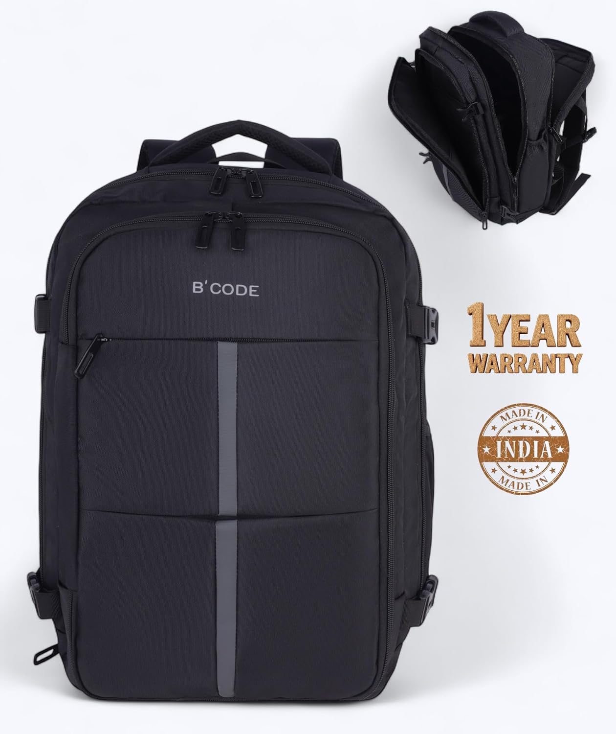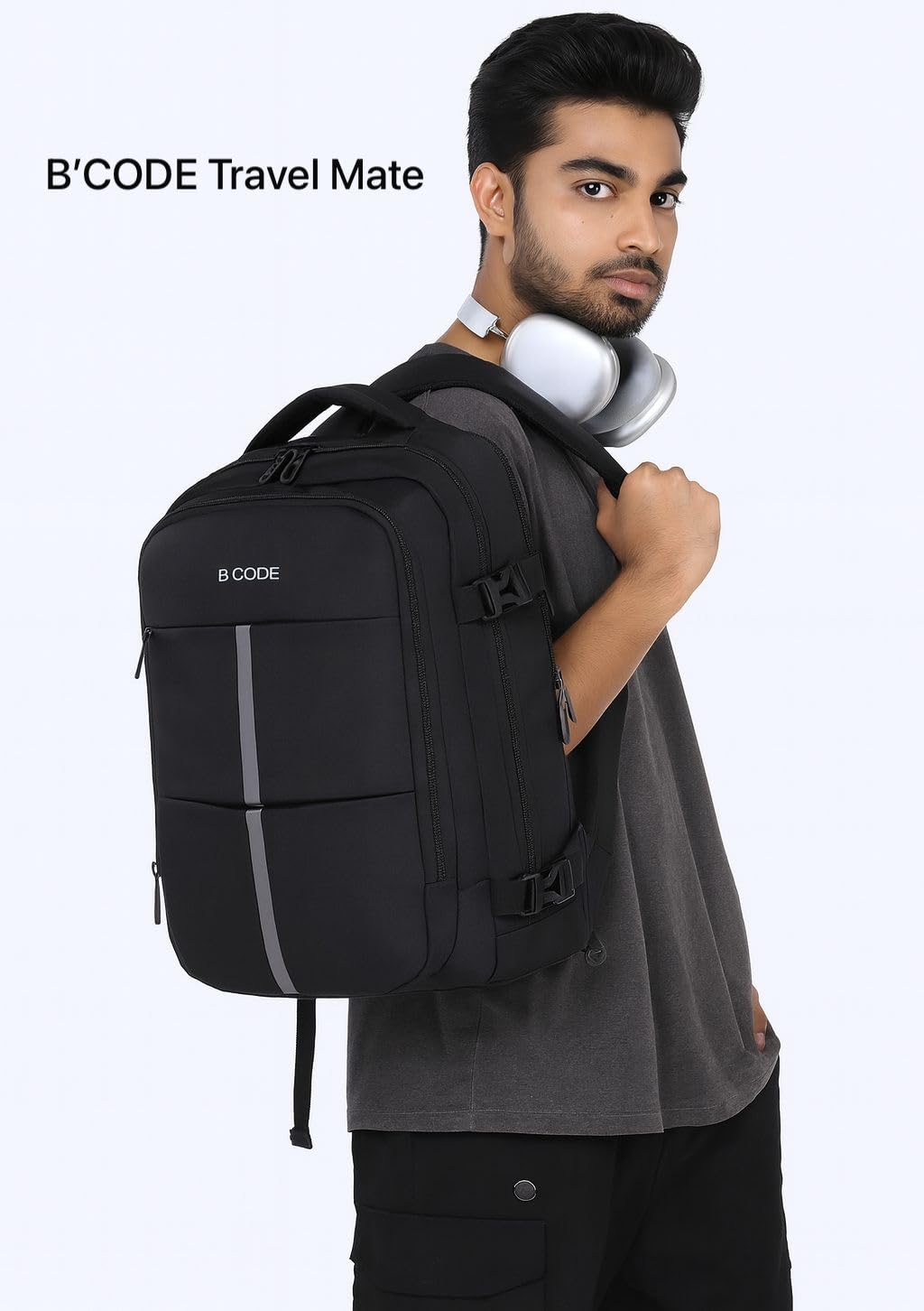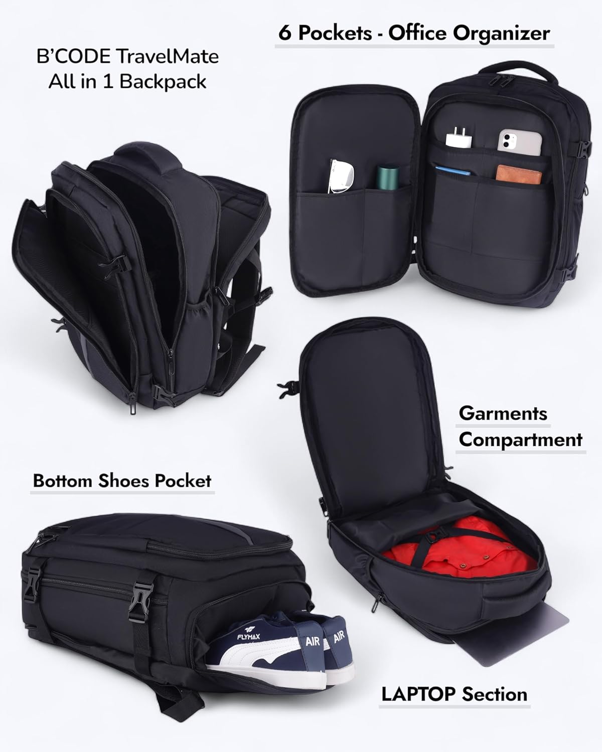 B’CODE TravelMate 40L Laptop Backpack | Men & Women Travel Bag | Convertible Carry-On Luggage | Expandable Design | Shoe Compartment | Multiple Organizers | Water-Resistant Fabric