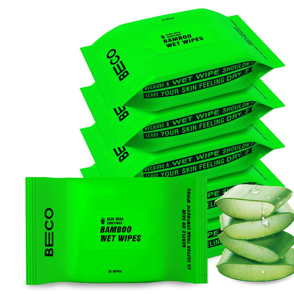 Beco Bamboo Aloe Vera Wet Wipes, 25 Pulls Each, Pack of 6, 100% Natural & Eco-Friendly