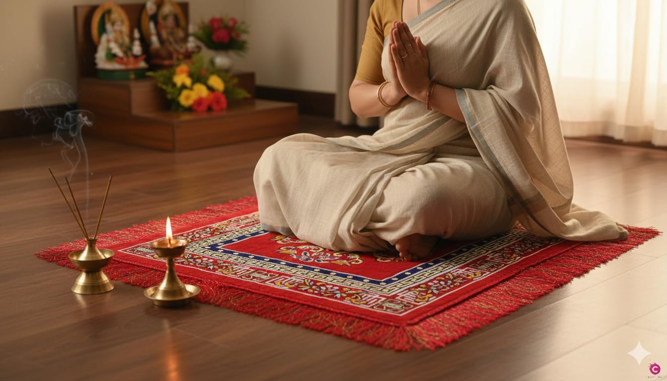 Traditional CASA-NEST Carpet/Pooja Mat with a square shape.