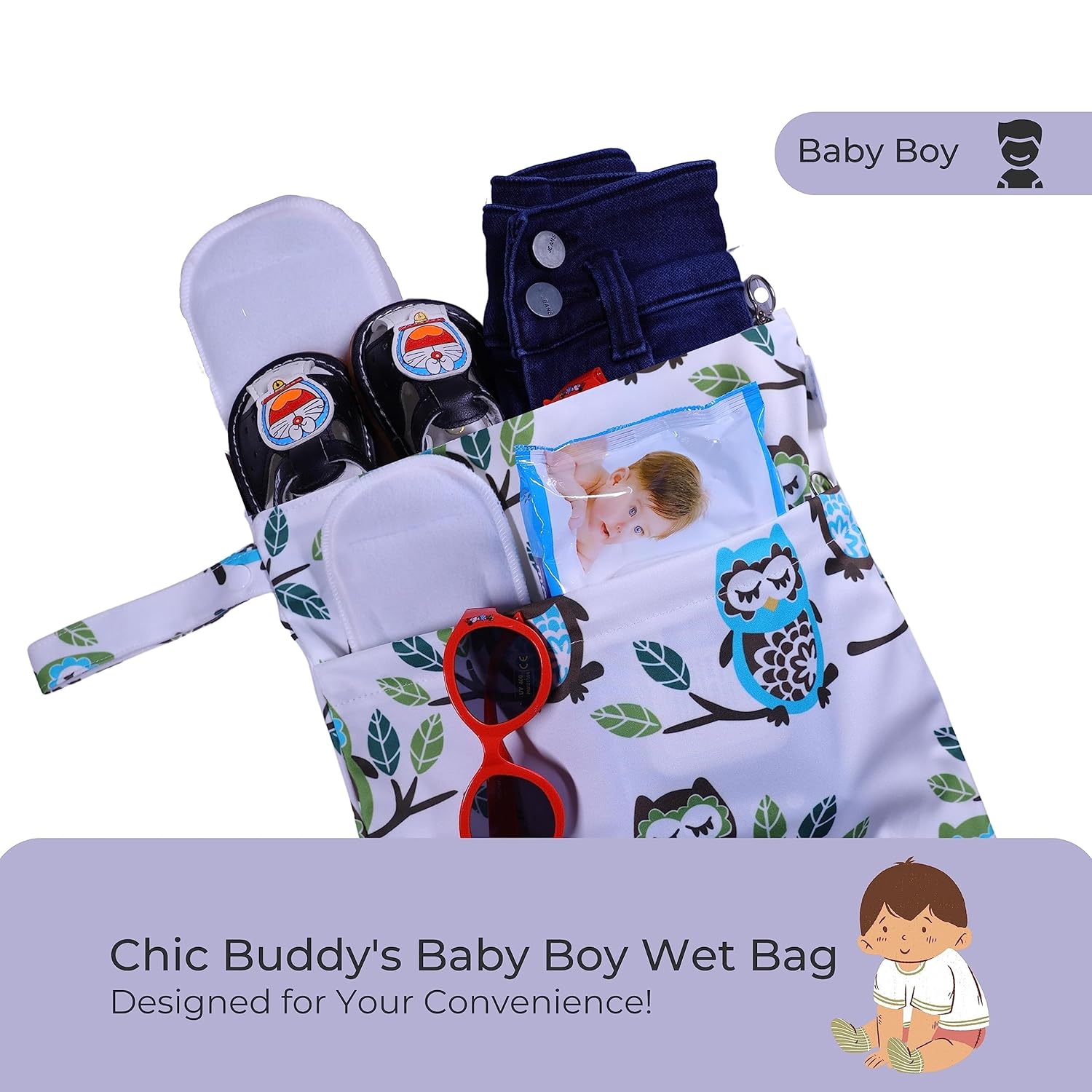 Waterproof – Chic Buddys’ original fabric is 100% polyester with embedded TPU for waterproofing and our heat-sealed seams keep the mess where it belongs – inside the bag