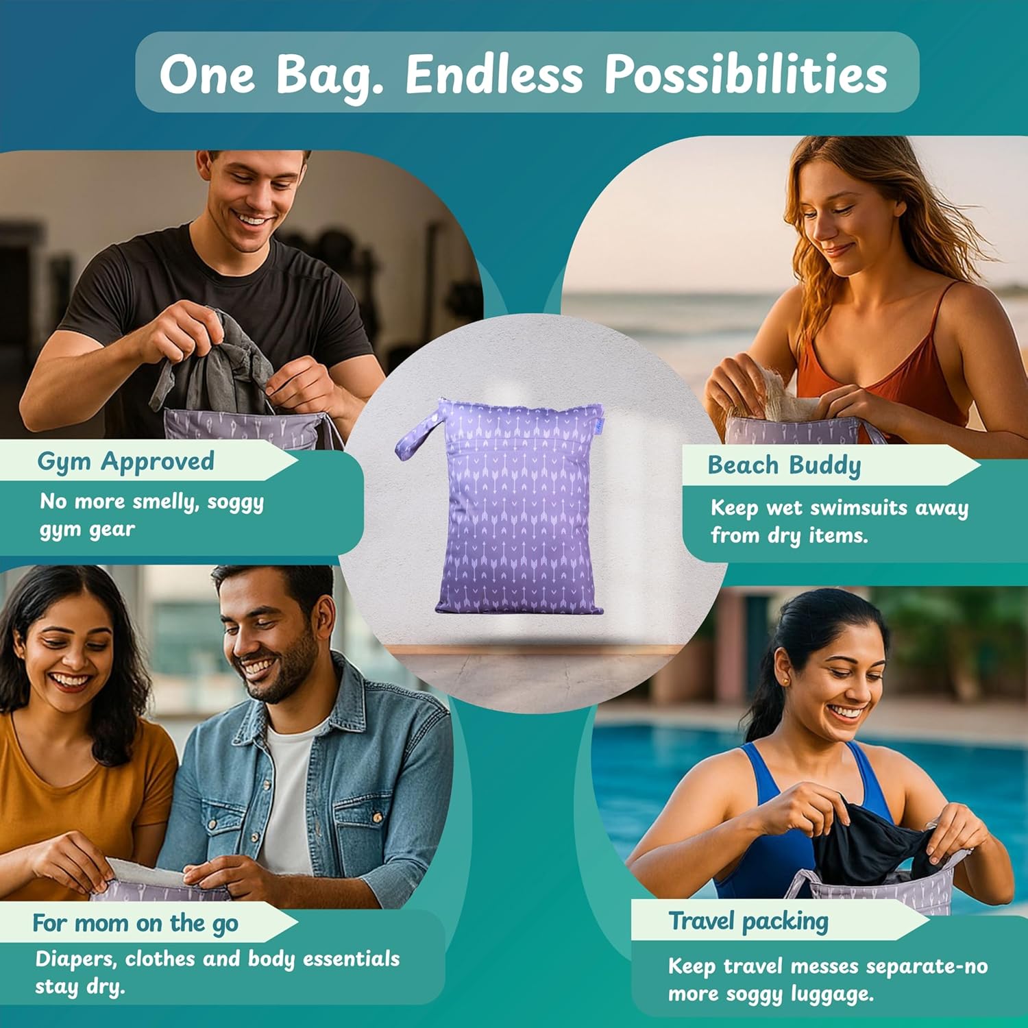 Convenient – Our wet bags are great for carrying diapers, dirty gym clothes and wet swimsuits; not just for wet stuff – these bags make excellent organizers for toys, accessories, toiletries, electronics, travel and more