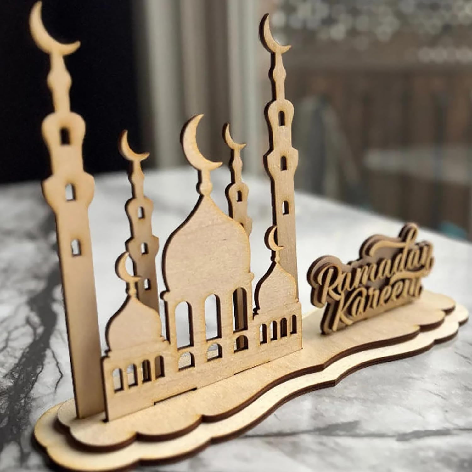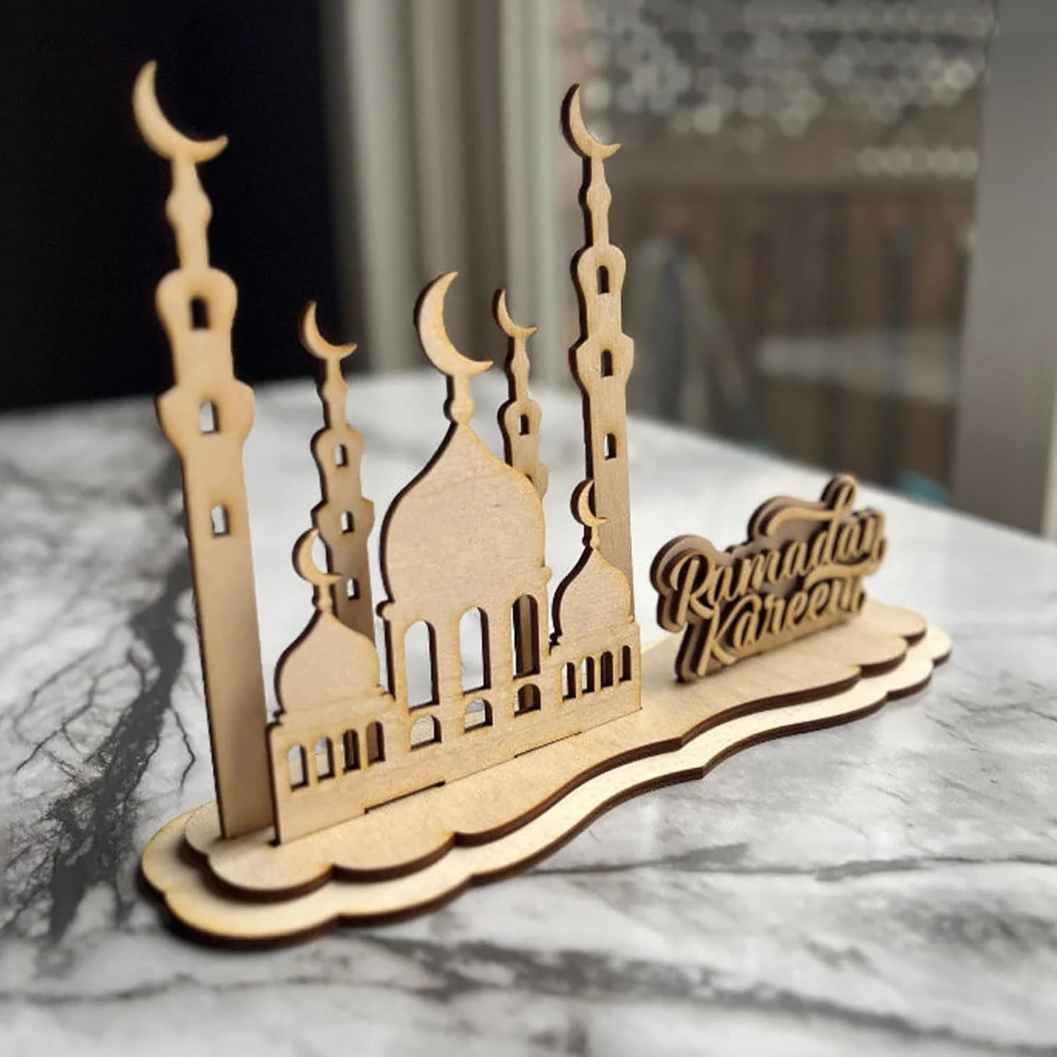Versatile Islamic Home Decor: Perfect for mantels, prayer areas, or table settings, this wooden decor enhances any space with its timeless design. Bring the spirit of Ramadan into your home with this elegant piece.