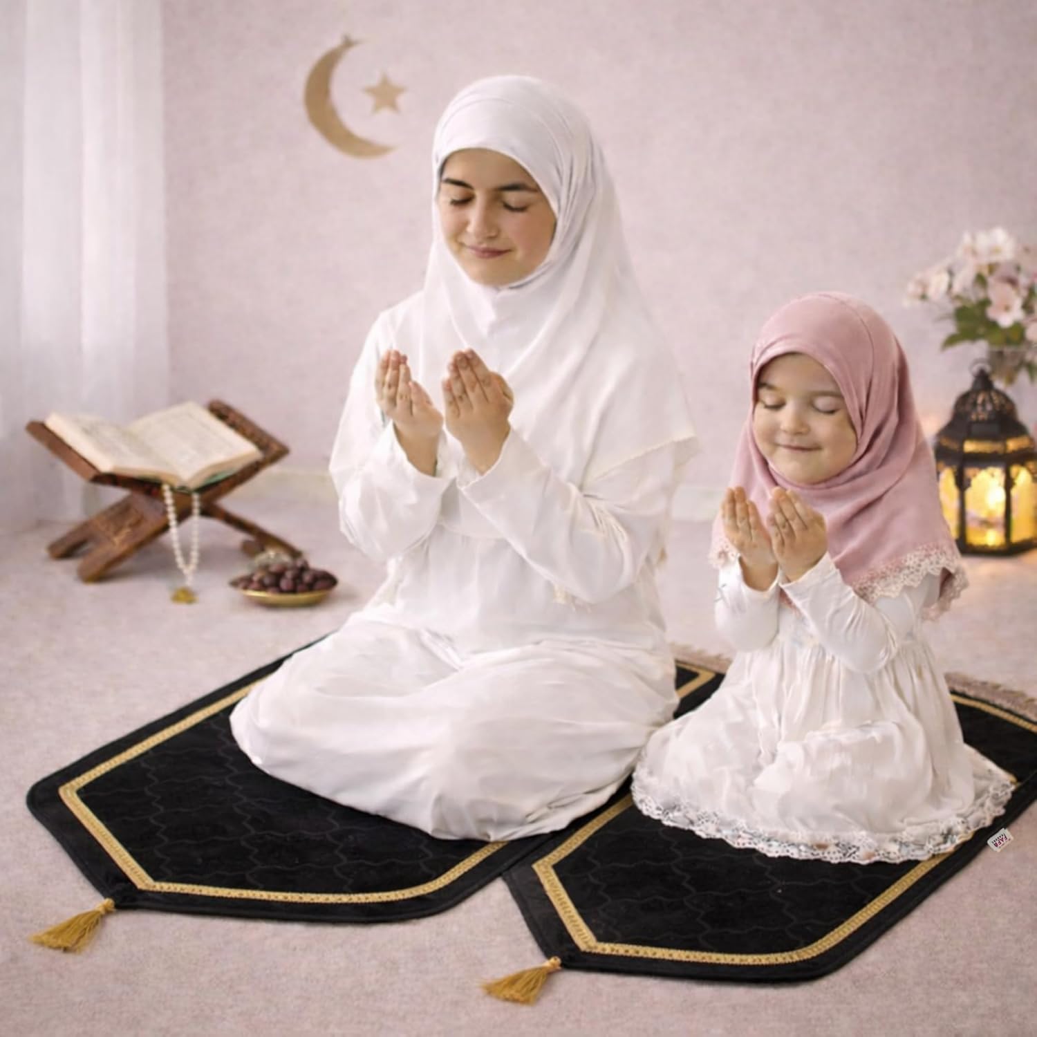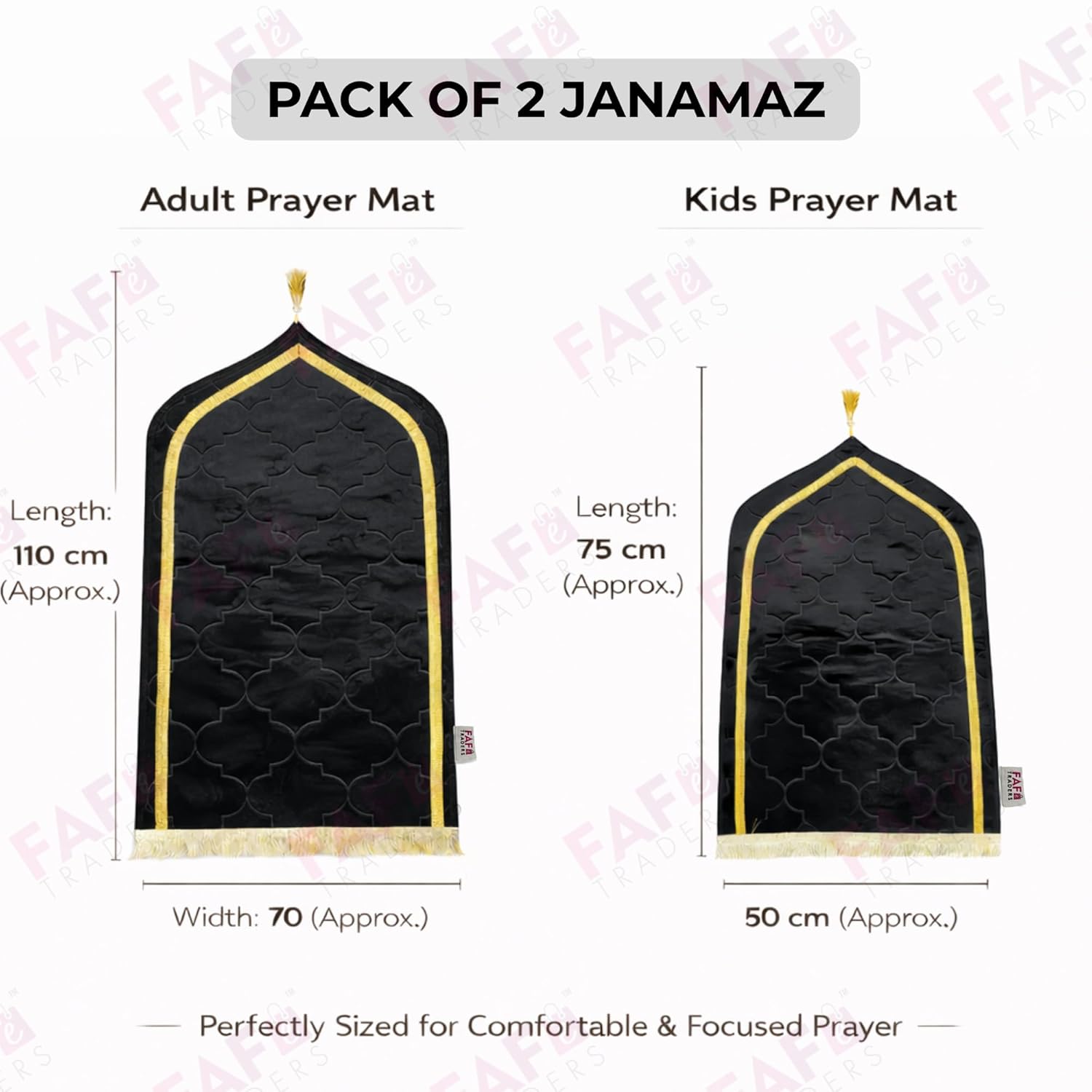 Separate Sizes for Children & Adults Kids Janamaz: Ideal for children age 1–10 Adult Janamaz: Comfortable size for men & women Works as kids and adult prayer mat muslims combo.