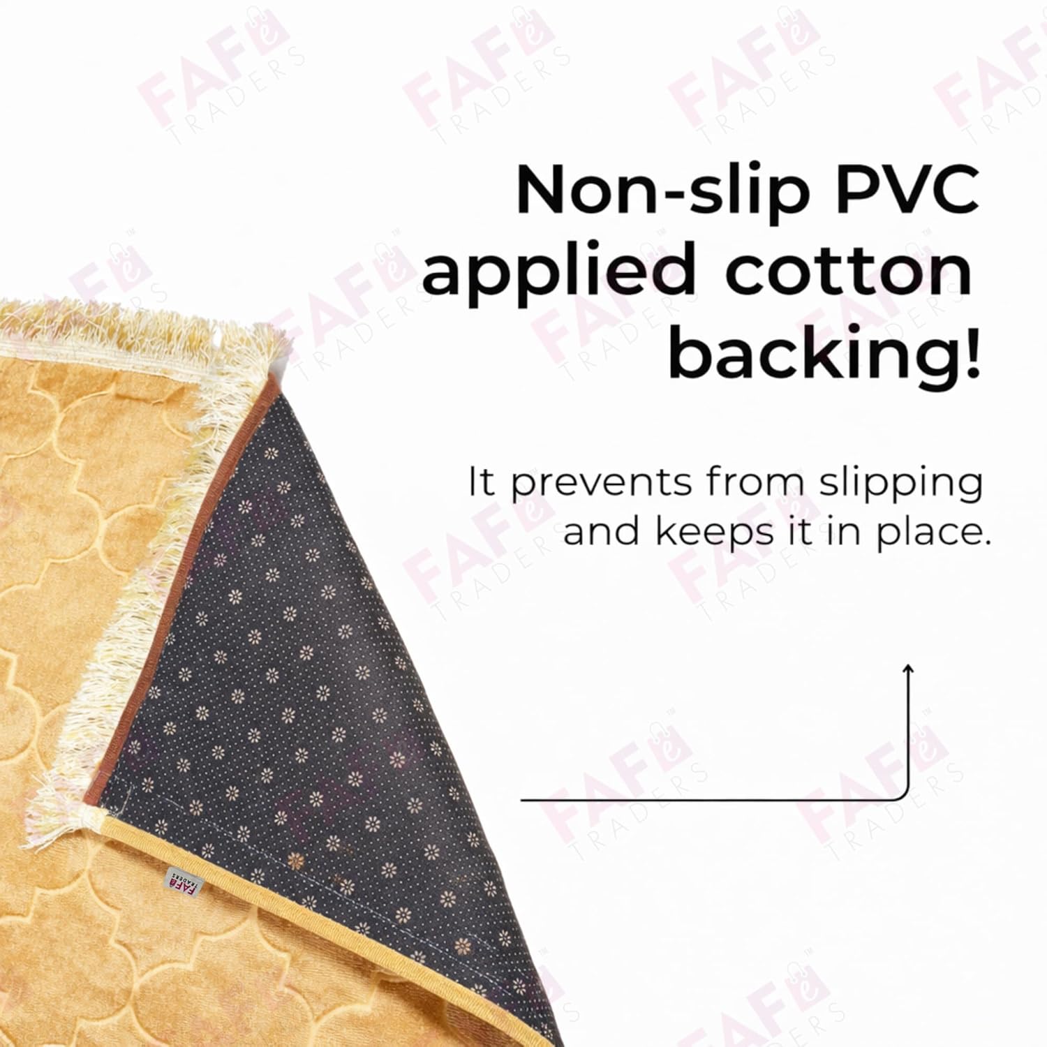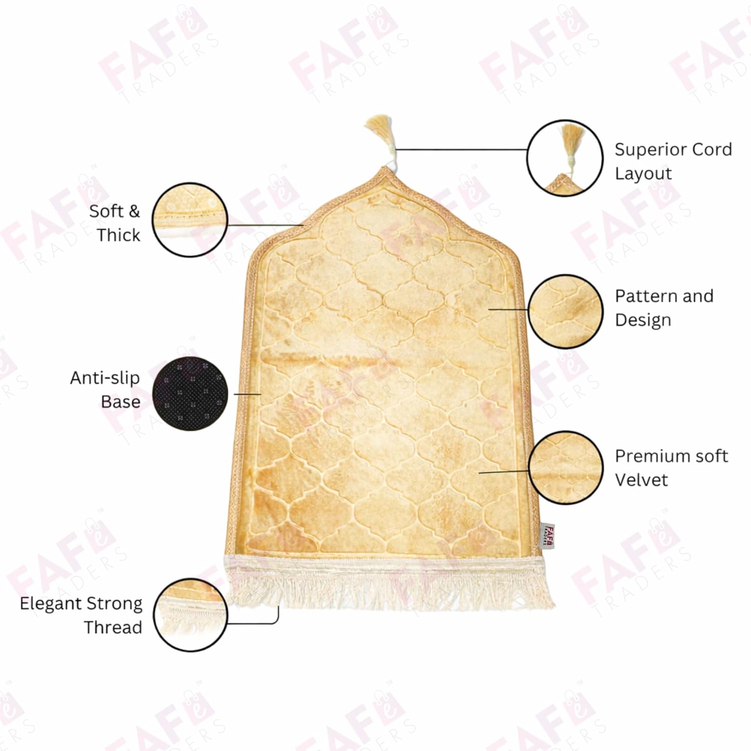 Soft Velvet & Thick Quality Prayer Mat Made with premium velvet fabric and soft thick for comfortable praying. This velvet janamaz prayer mat thick quality provides support for knees and feet during namaz, suitable for long prayer sessions.