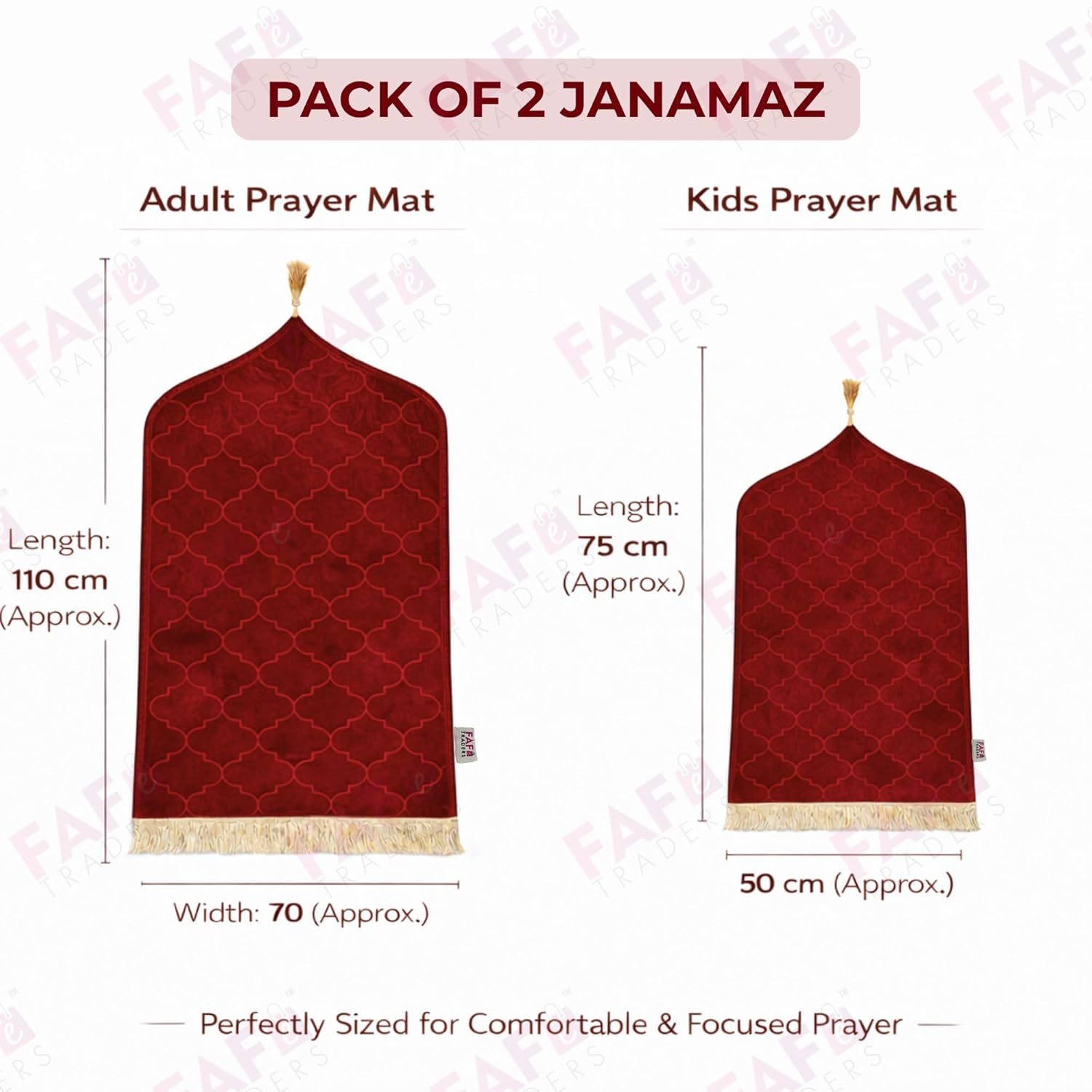 Combo of 2 Janamaz Velvet Prayer Mat | one Kid + one Adult (Pack of 2) | Soft Thick Islamic Prayer Rug Set for Children & Grown Ups | Premium Namaz Mat for Home, Ramdan, Hajj and Umrah (Maroon)