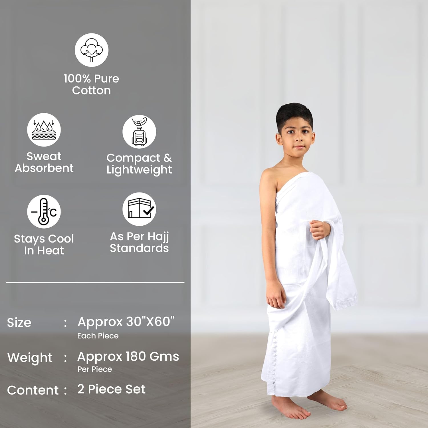 Cooltex Ihram for Kids (Ages 4–8 Years) – Breathable Cooling Fabric, Lightweight, Sweat Absorbent, Quick Dry – Hajj & Umrah