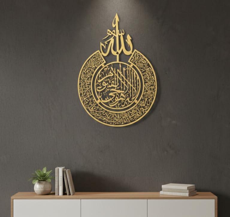 CRAFTINZA Ayatul Kursi Islamic Wall Art | Golden Acrylic Allah Arabic Calligraphy for Home Decor, Living Room & Gift (50cm x 40cm)