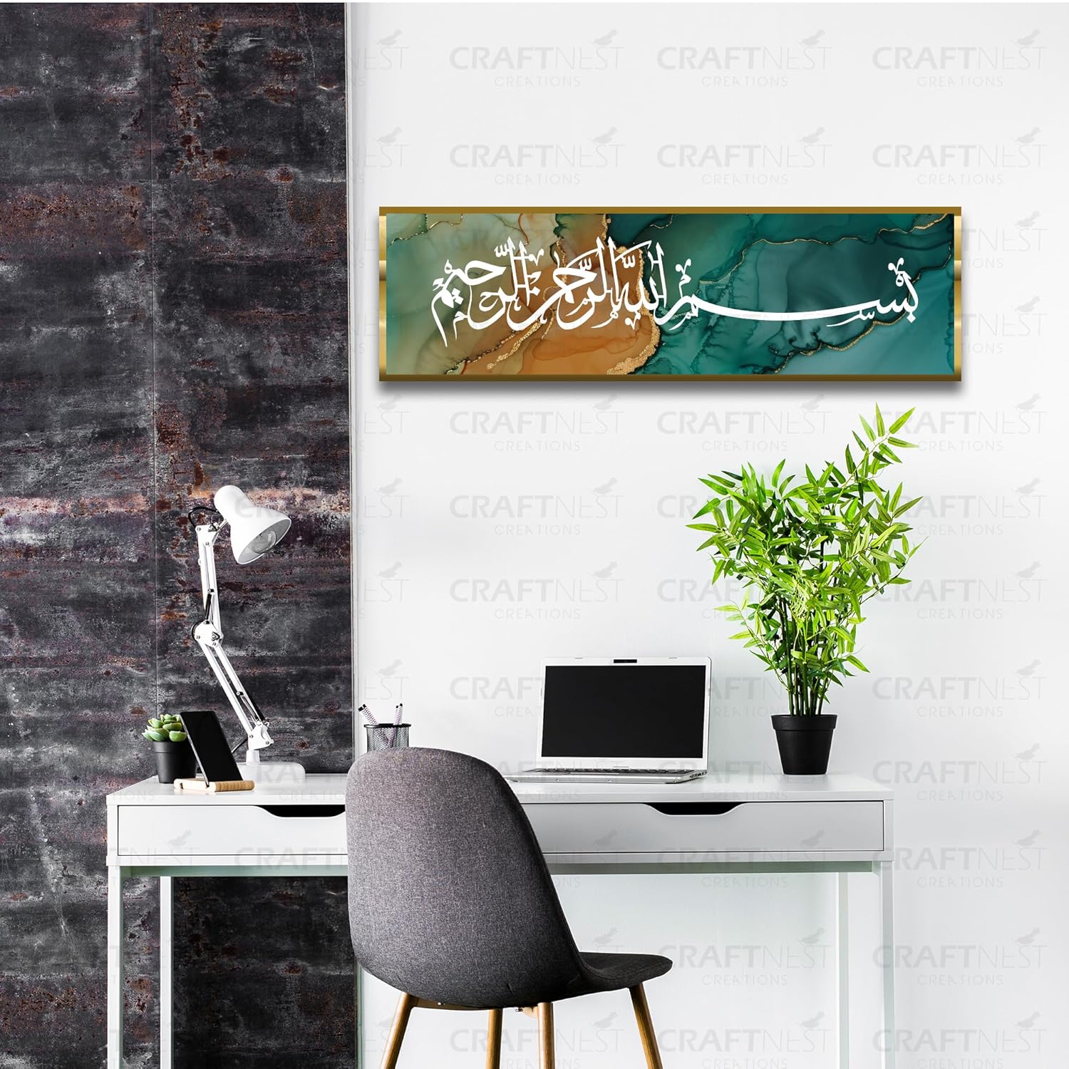 Be the first to review “Craftnest Creations Bismillah Hir Rahmanir Rahim Islamic Wall Art | 6×20 Inch Shiny Reflective Frame Arabic Calligraphy Canvas | Muslim Home & Office Decor, Eid & Housewarming Gift (Design 6)”